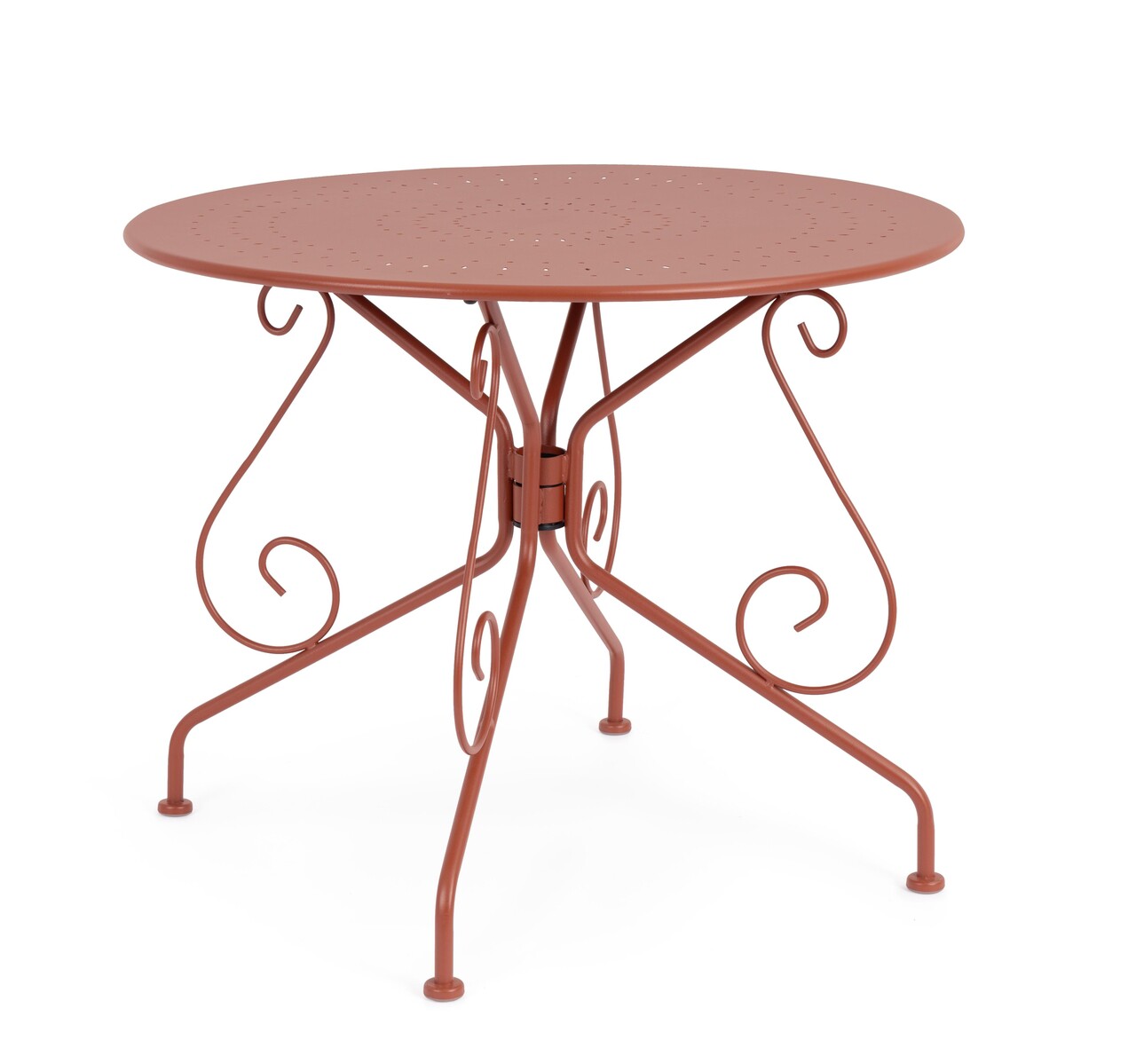 Masa pentru gradina Etienne, Bizzotto, D90x72 cm, otel, invelis e-coating, finisaj mat, rosu picant