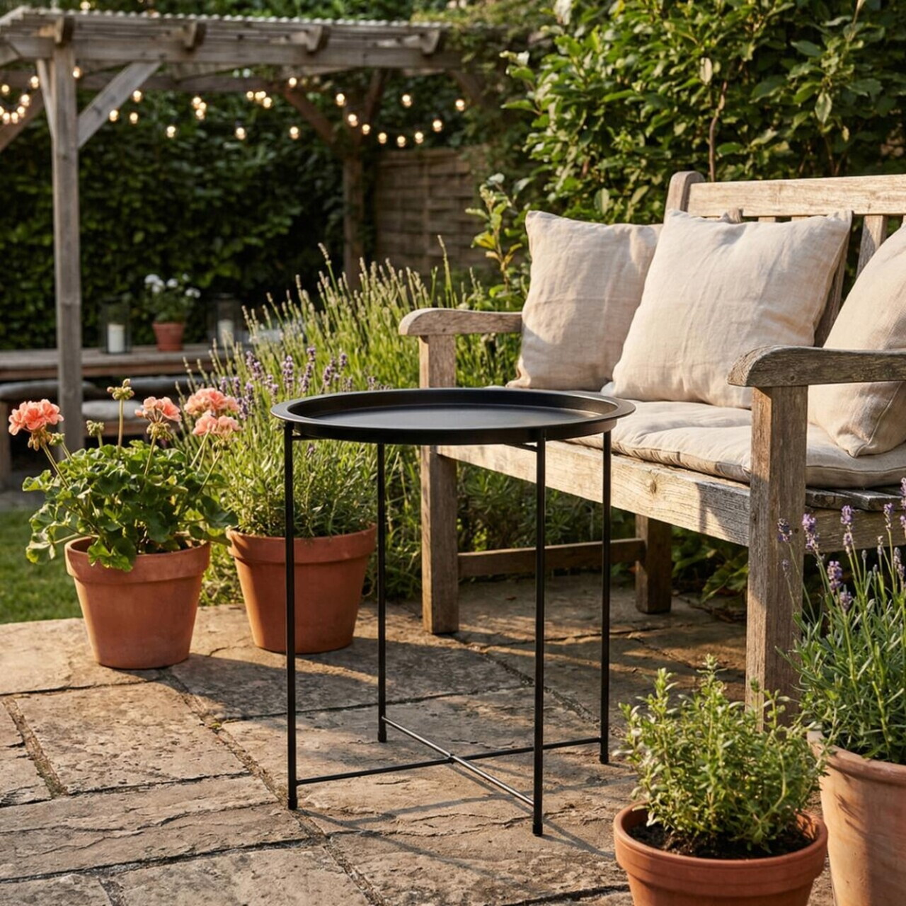 Masa pentru gradina Heinner, 46x53 cm, otel, negru