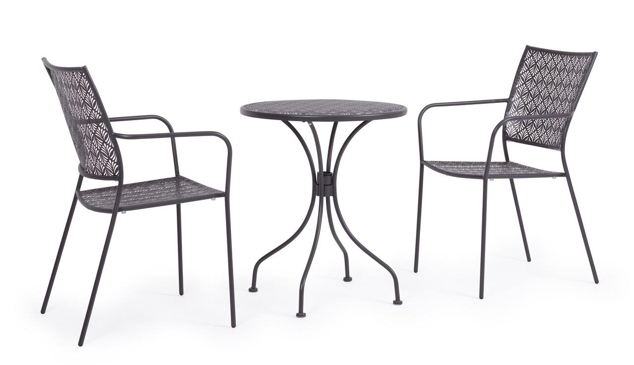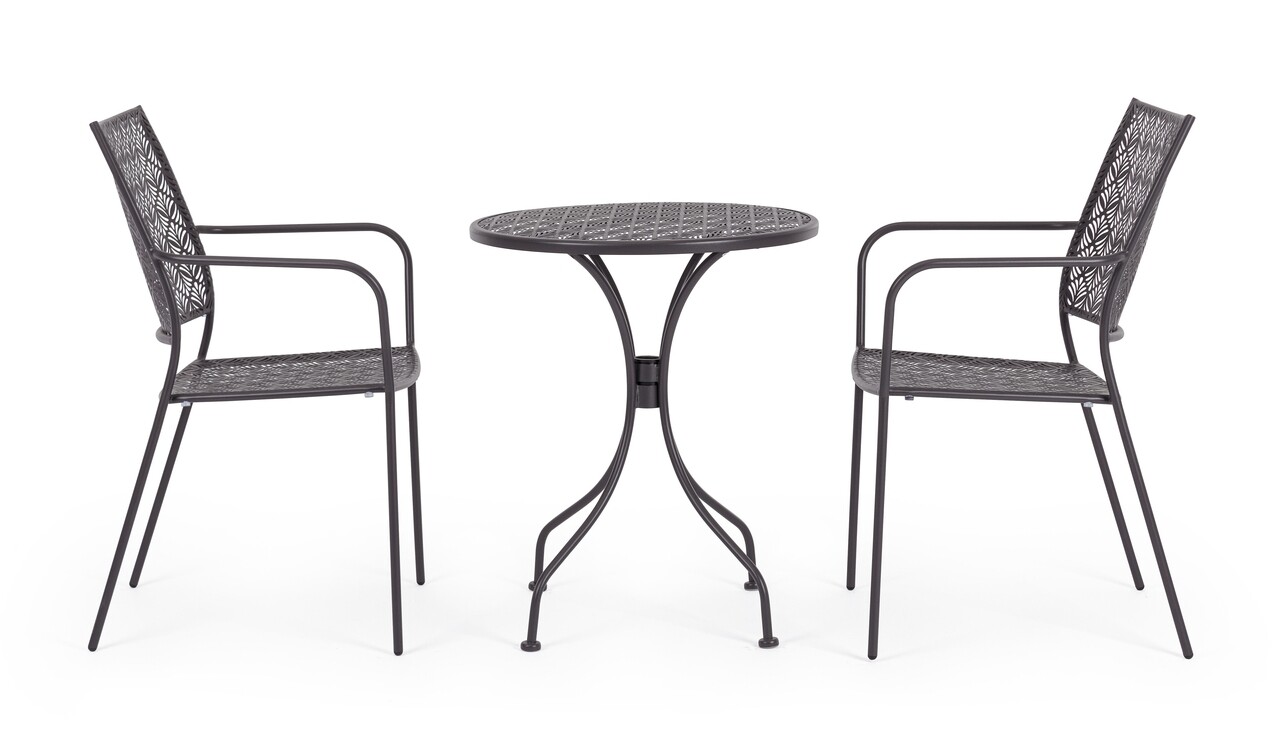Masa pentru gradina Lizette, Bizzotto, Ø60 x 71 cm, otel, finisaj mat, gri carbune