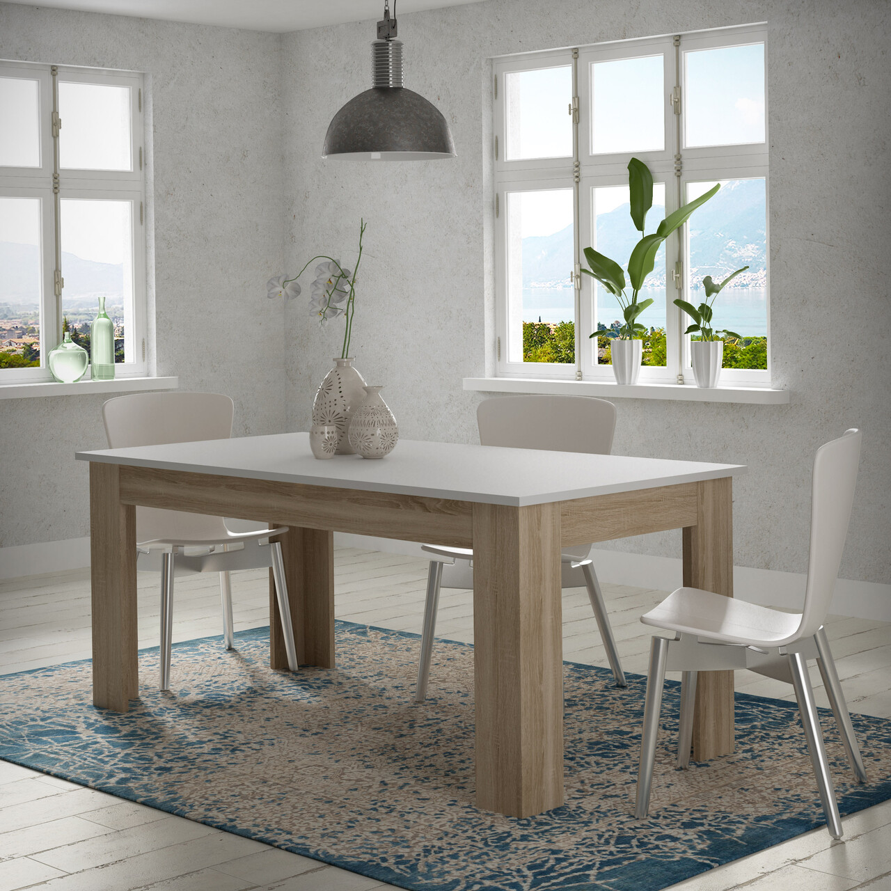 Masa Raalte, Bedora, 180x90x77.3 cm, PAL, stejar/alb