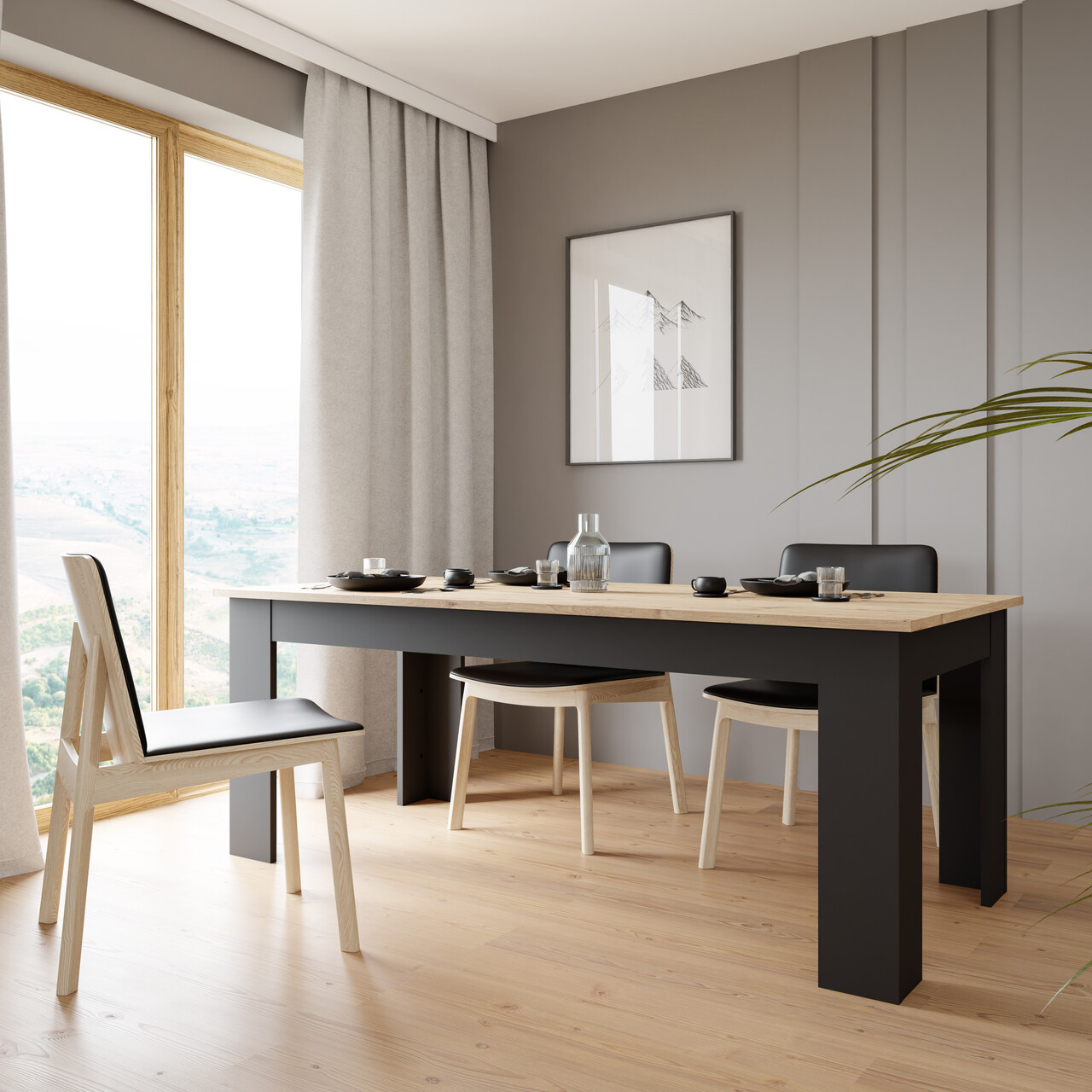 Masa Raalte, Bedora, 180x90x77.3 cm, PAL, stejar/negru