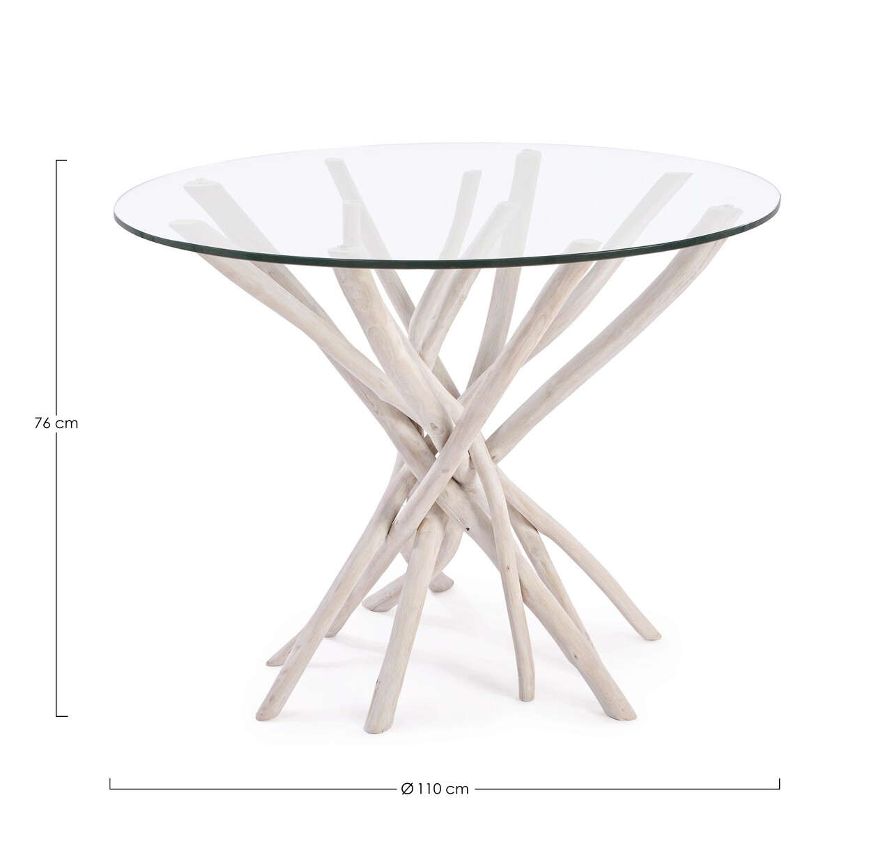 Masa Sahel, Bizzotto, 110 x 110 x 76 cm, ramuri de tec/sticla temperata
