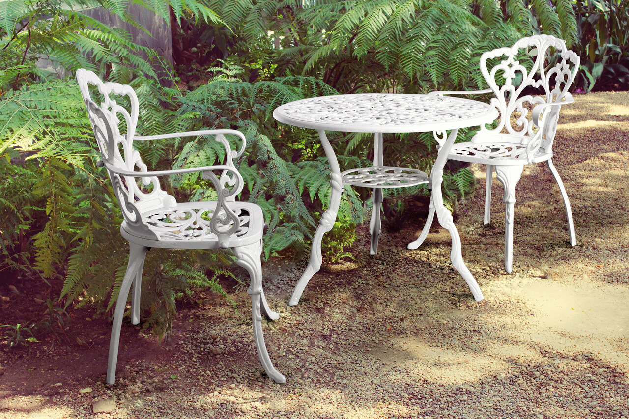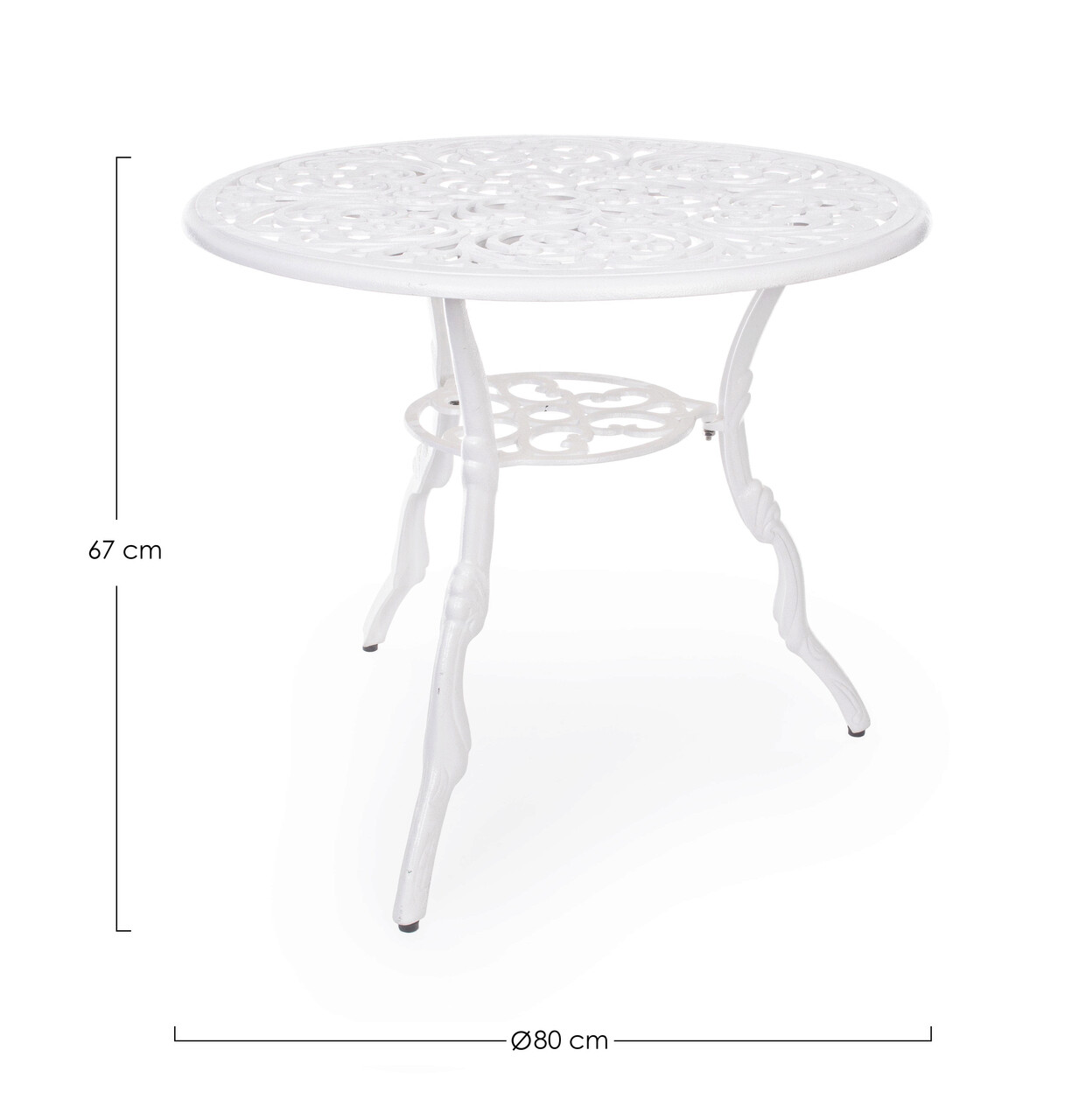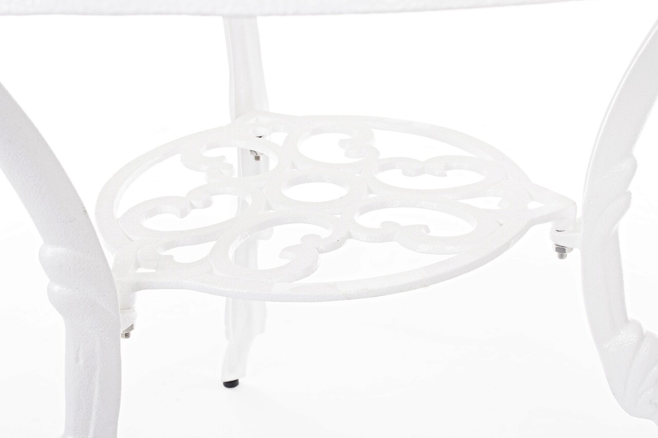Masa Victoria, Bizzotto, Ø80 x 67 cm, aluminiu turnat, finisaj semi-lucios, alb
