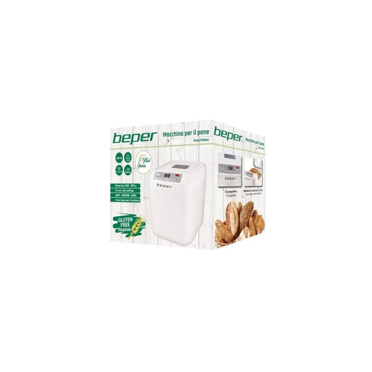 Masina de paine BC.130, Beper, 550 W, afisaj digital LCD, 3 grade de rumenire, 12 programe presetate