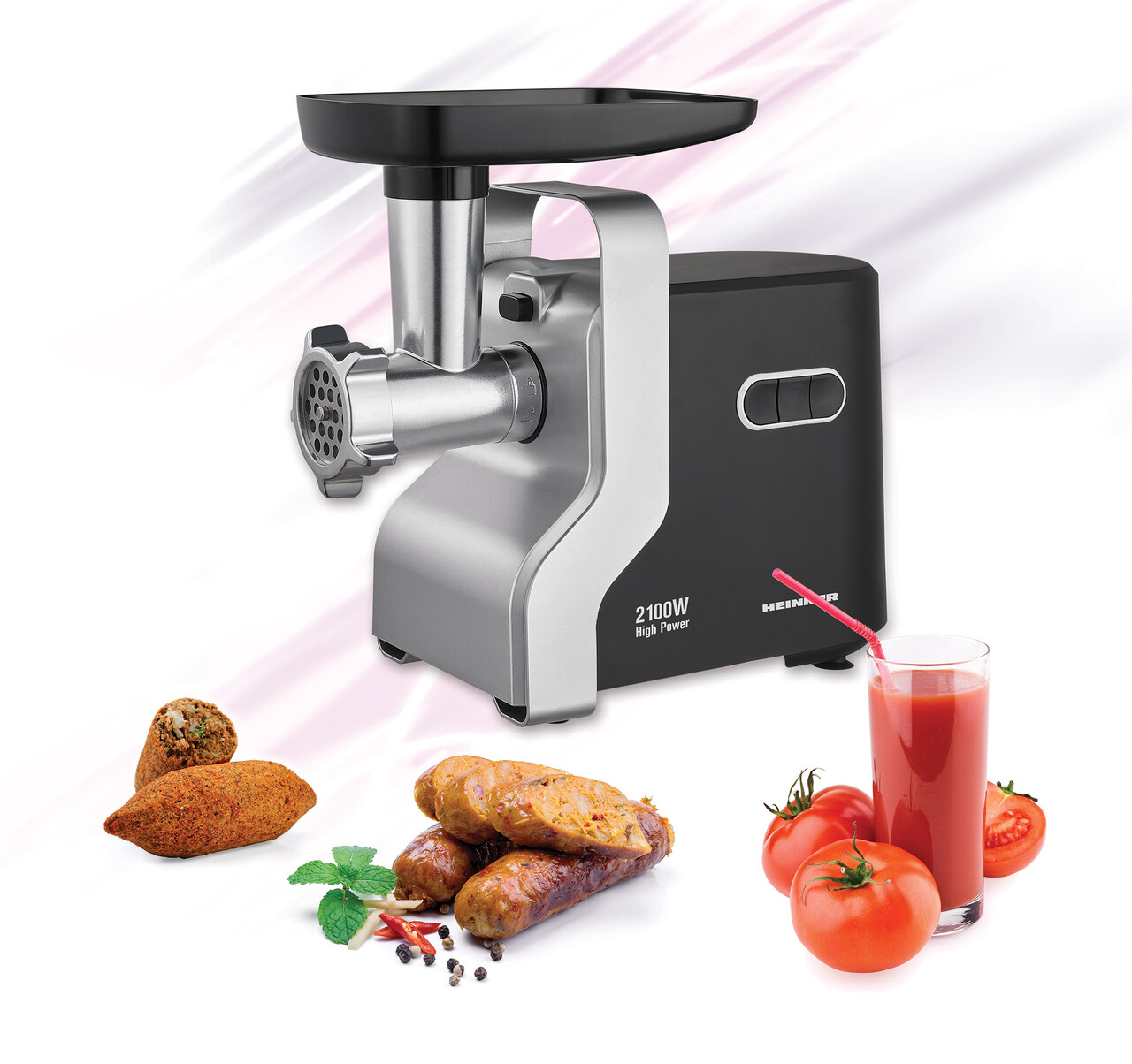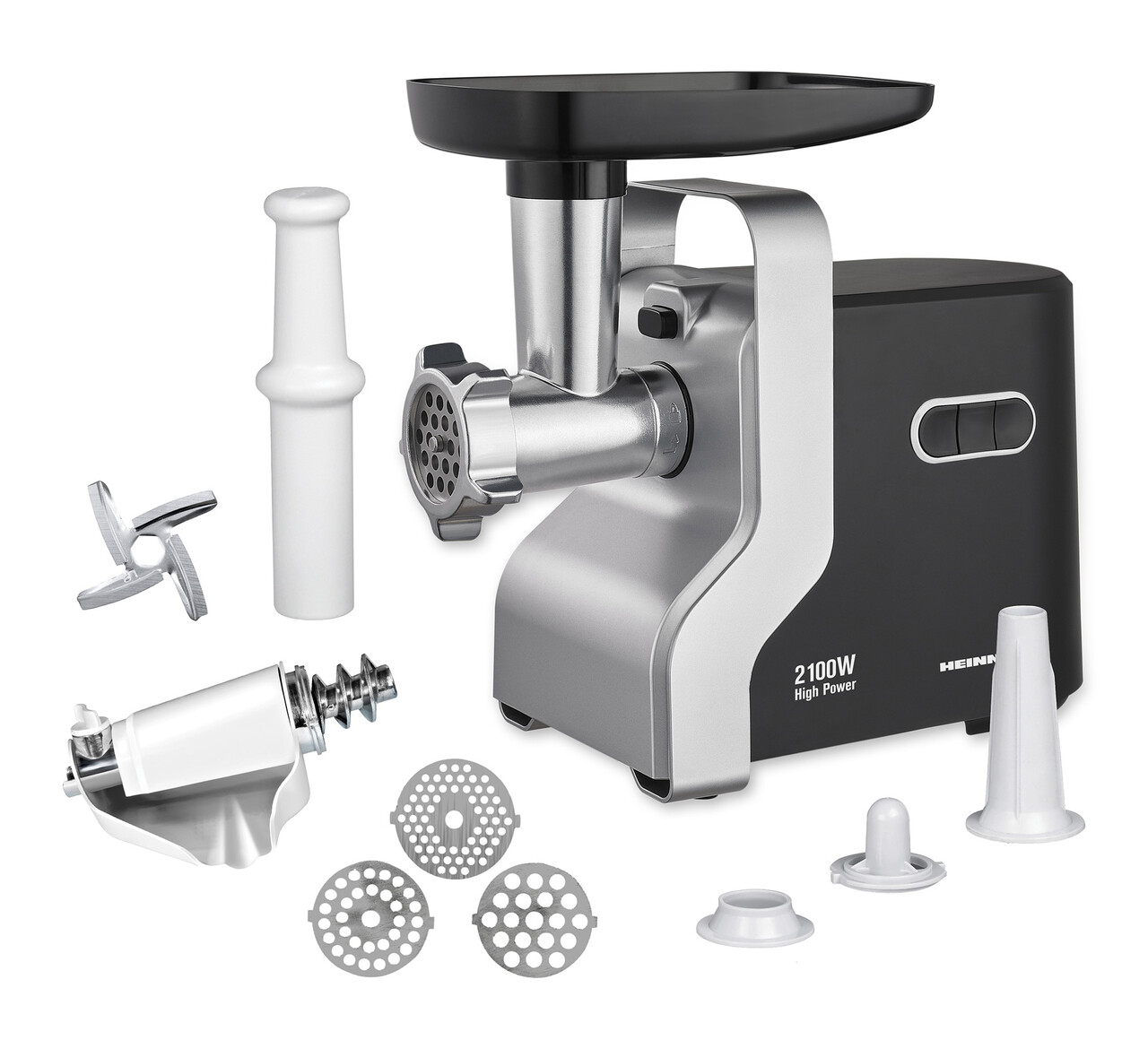 Masina de tocat Weston Silver, Heinner, 2100W, plastic/inox, negru/argintiu