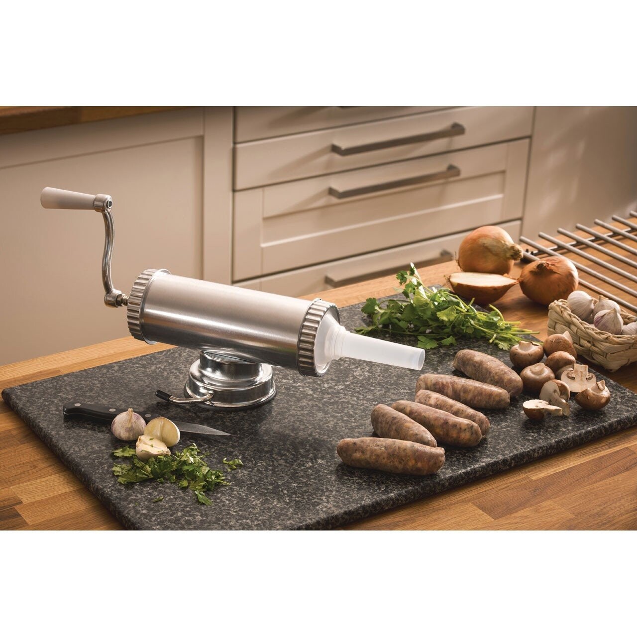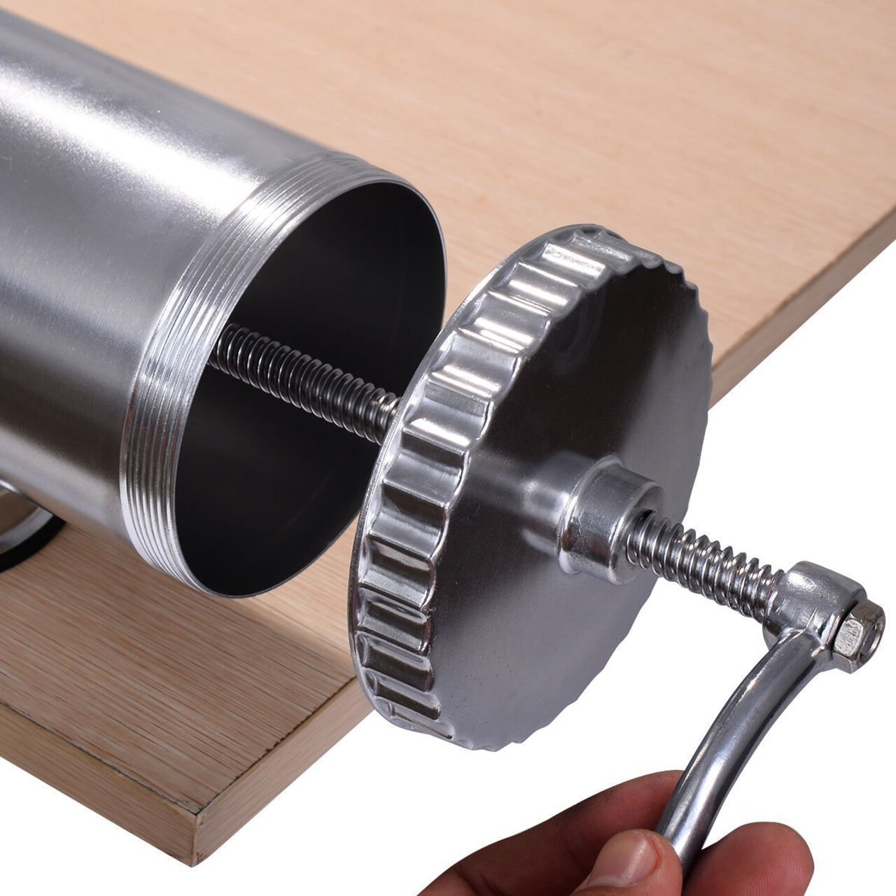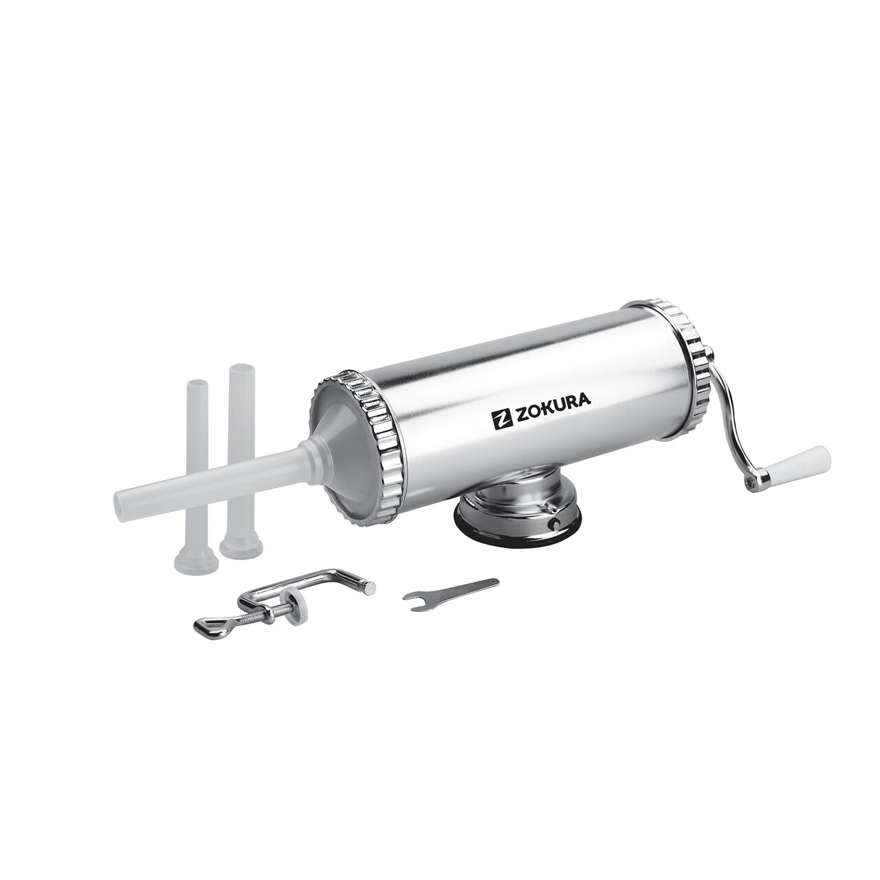 Din aluminiu, Masina iti permite sa pregatesti simplu si rapid o cantitate mare de carnati la o folosire, Tubul sau avand capacitatea de2,5 kg.