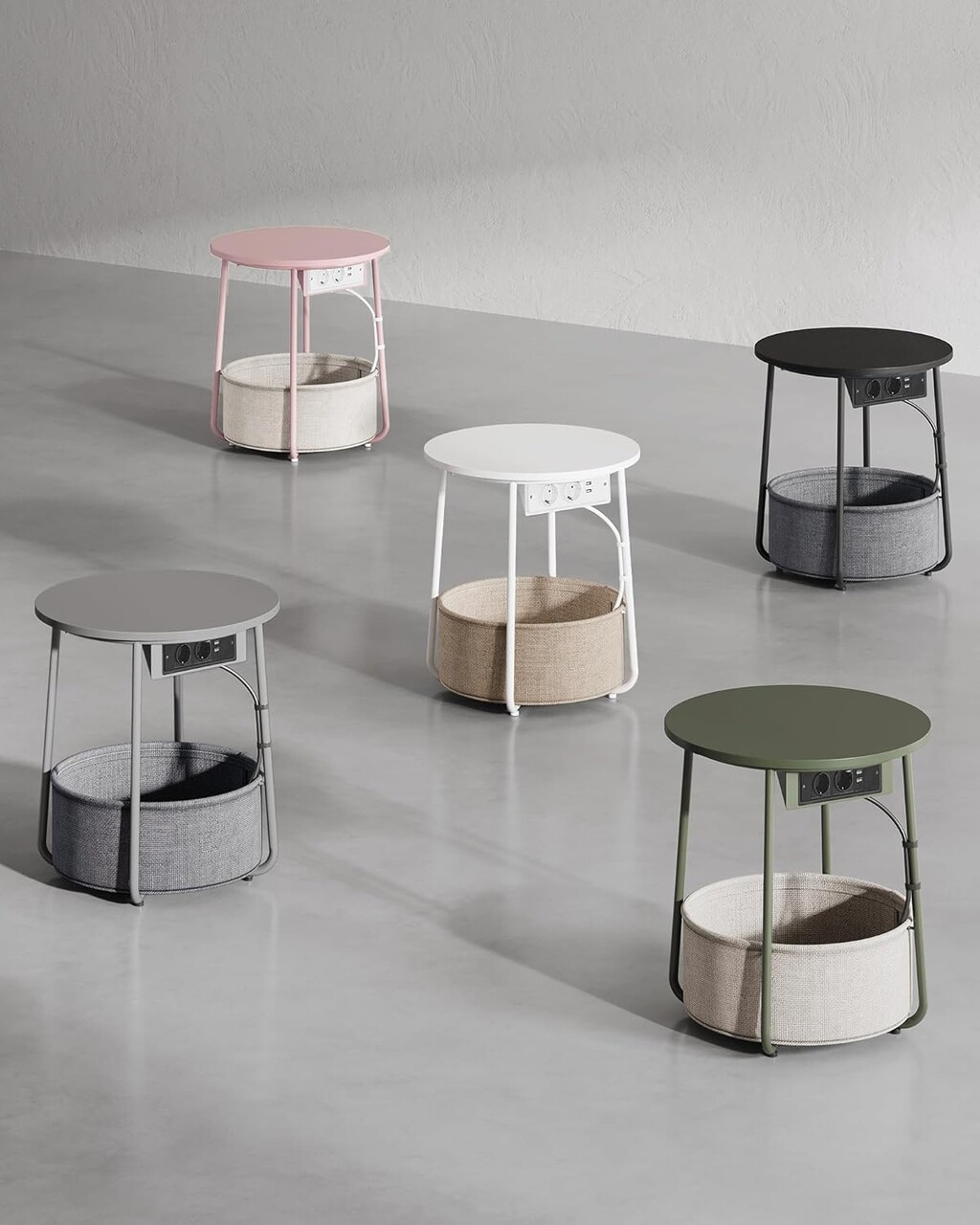 Potrivita in spatii mici Aceasta masa de 45 x 50 cm (Ø x H) si cosul de 39,6 x 18,2 cm (Ø x H) sunt potrivite pentru spatii mici. Poate fi folosita ca masa laterala in camera dvs. de zi sau ca noptiera in dormitor. Ofera un nou spatiu de depozitare fara sa ocupe spatiu.