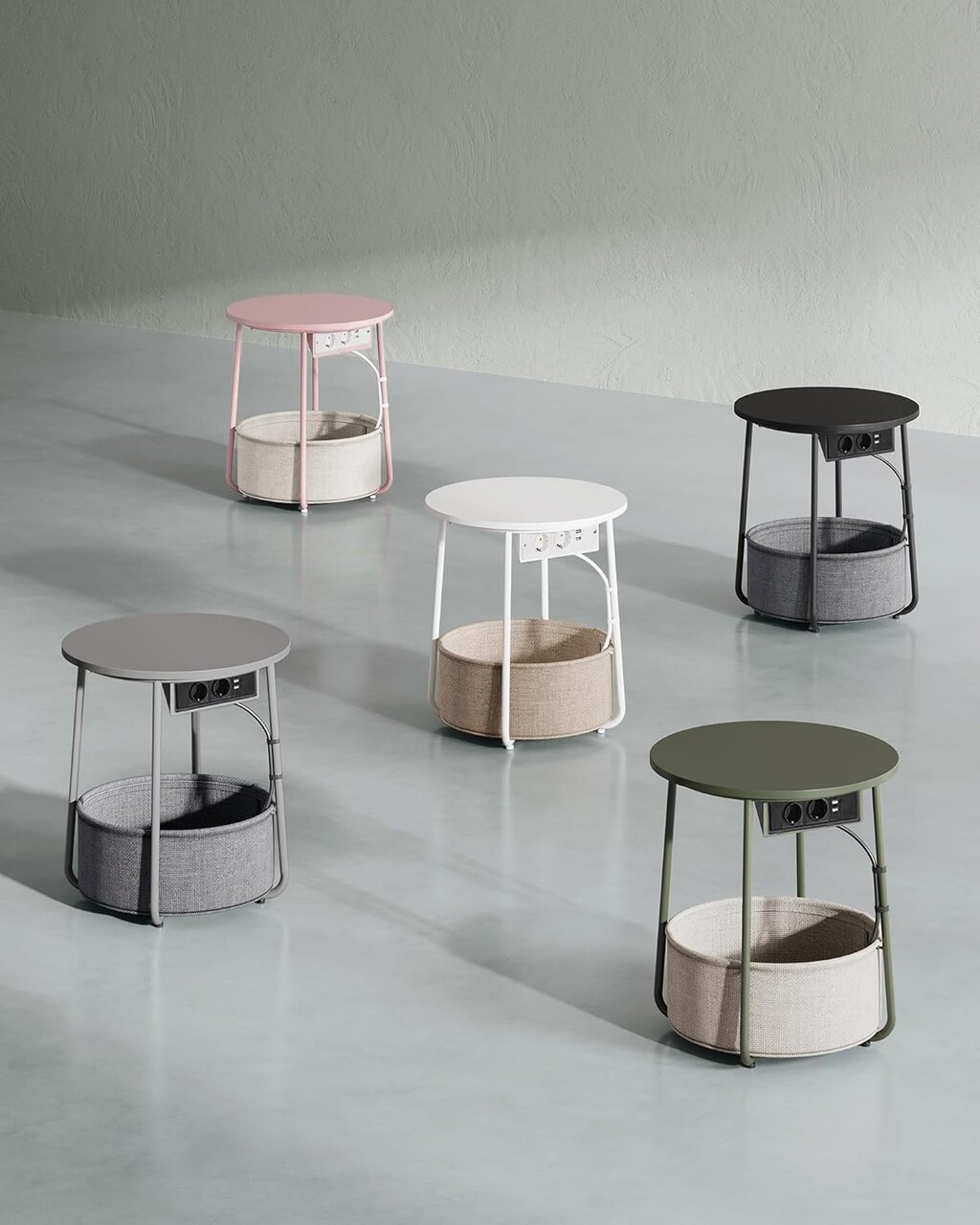 Masuta cu cos textil, priza si USB, Vasagle, 45x50 cm, max 35 kg, PAL/otel, verde padure/crem