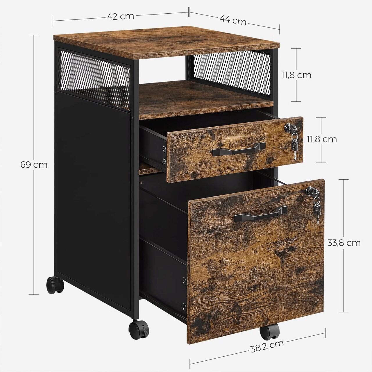 Masuta cu roti / dulap de birou Vasagle, 44x42x69 cm, PAL/otel, maro