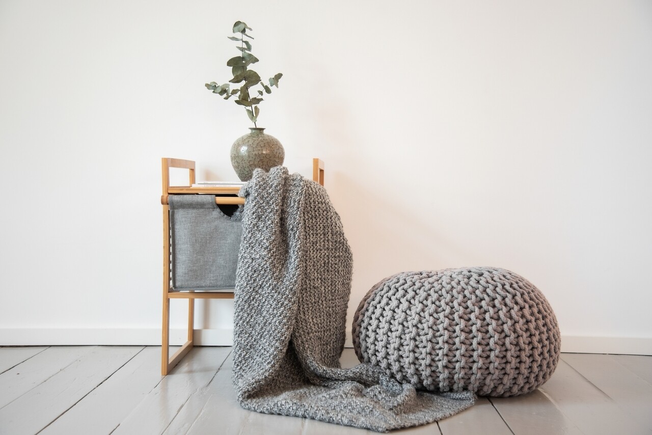 Masuta cu spatiu pentru depozitare, Wenko, Bahari, 40 x 40 x 56 cm, bambus/poliester, maro/gri