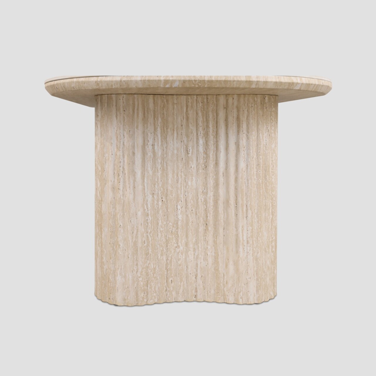 Descopera eleganta atemporala a masutei de cafea BELLEZA care combina designul minimalist cu un finisaj natural. Culoarea sa confera confort si armonie interiorului, iar detaliile subtile ii confera un caracter unic. Blatul din piatra sinterizata are un model natural impresionant care aminteste de travertin sau roca sedimentara.
