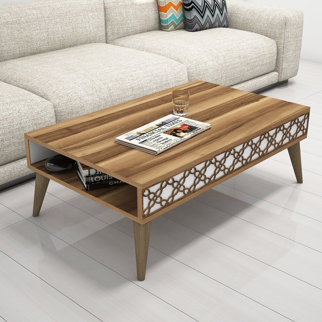 Masuta de cafea City Walnut, Hommy Craft, 105x60x37 cm, aluna/alb