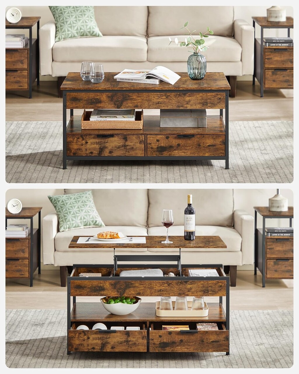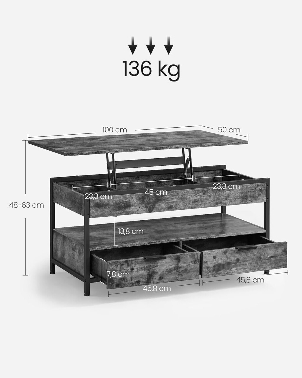 Masuta de cafea cu blat rabatabil, Vasagle, 100x50x48-63 cm, max 136 kg, maro