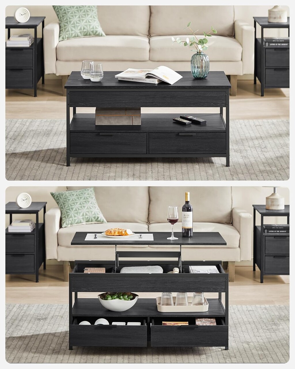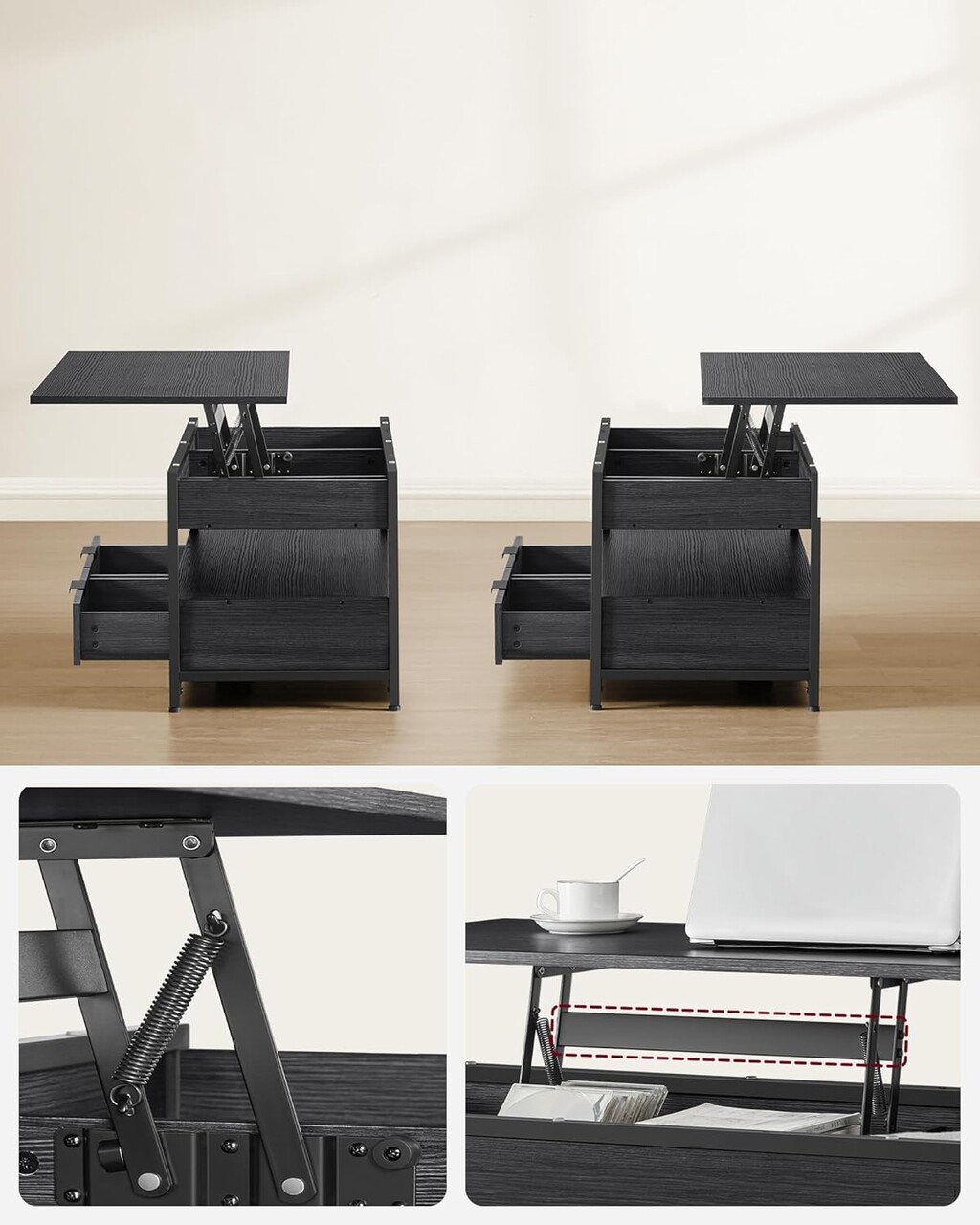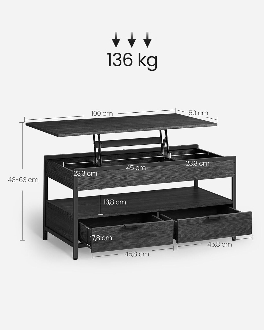 Masuta de cafea cu blat rabatabil, Vasagle, 100x50x48-63 cm, max 136 kg, gri/negru