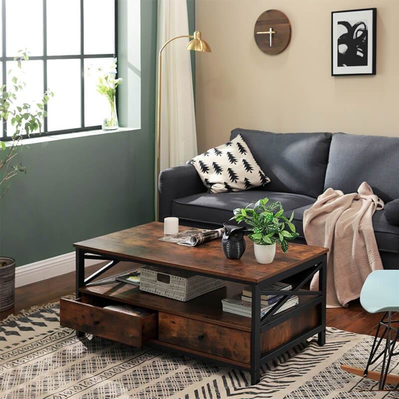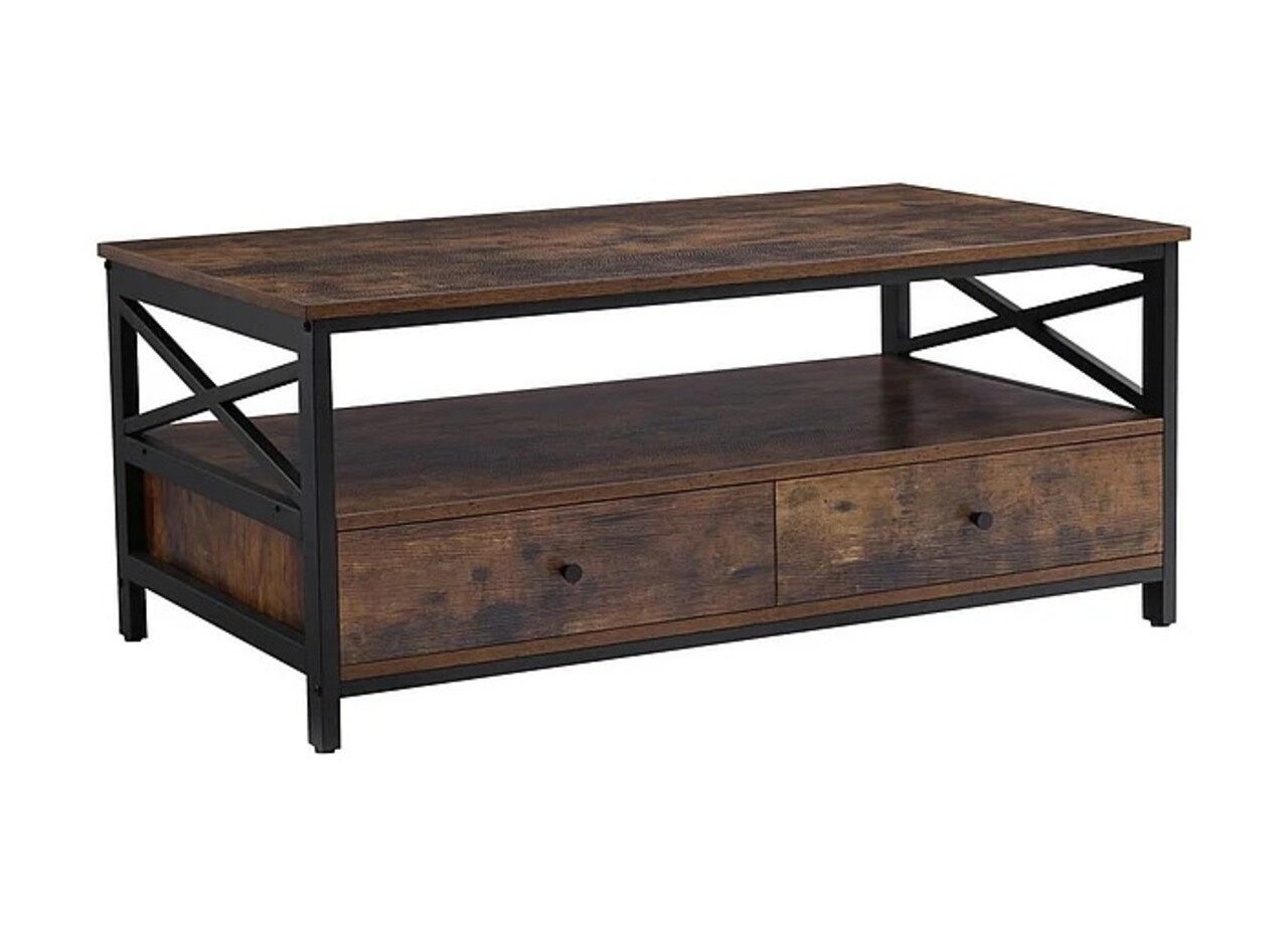 Masuta de cafea cu sertare, Vasagle, 100 x 55 x 47 cm, fier/PAL, maro rustic