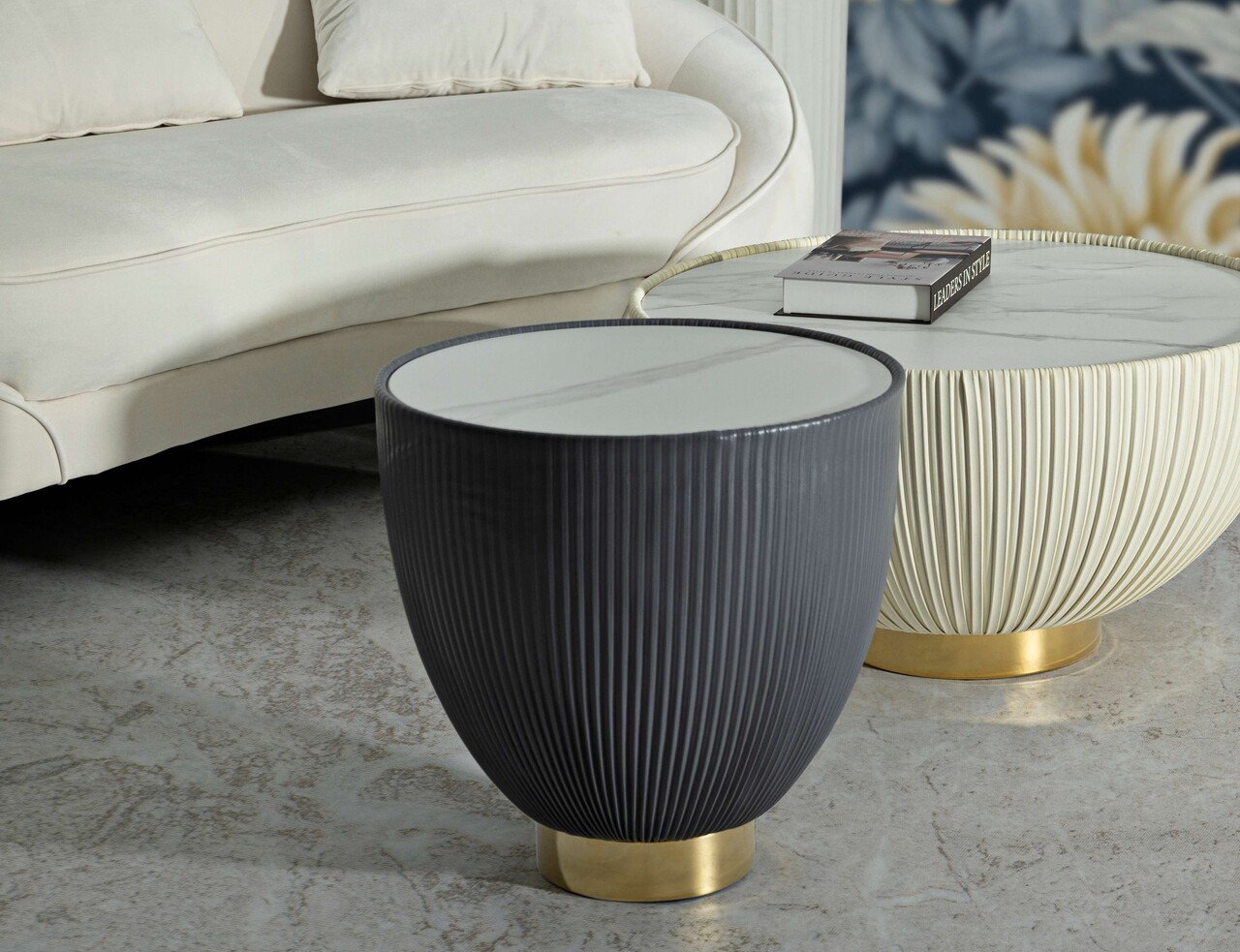 Masuta de cafea Elge, Mauro Ferretti, 46x46x45 cm, fier/ceramica, gri/auriu