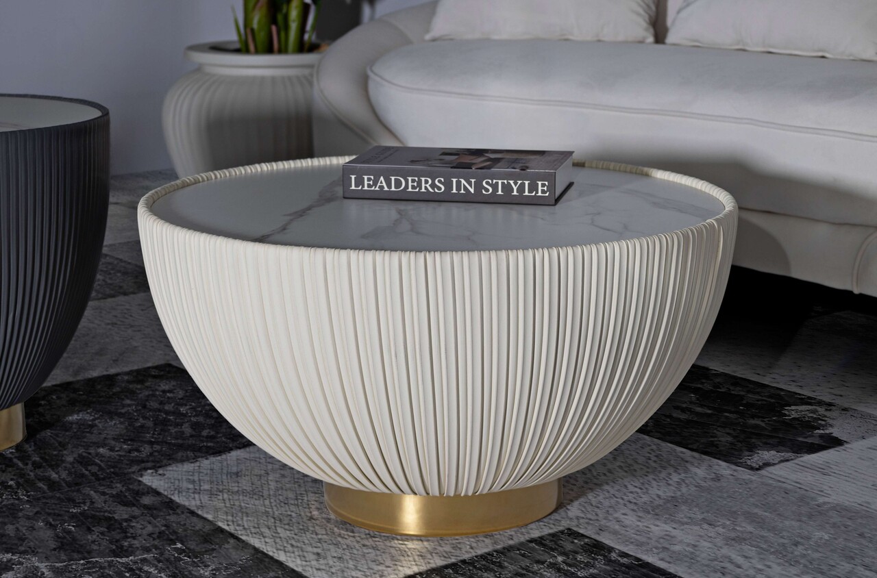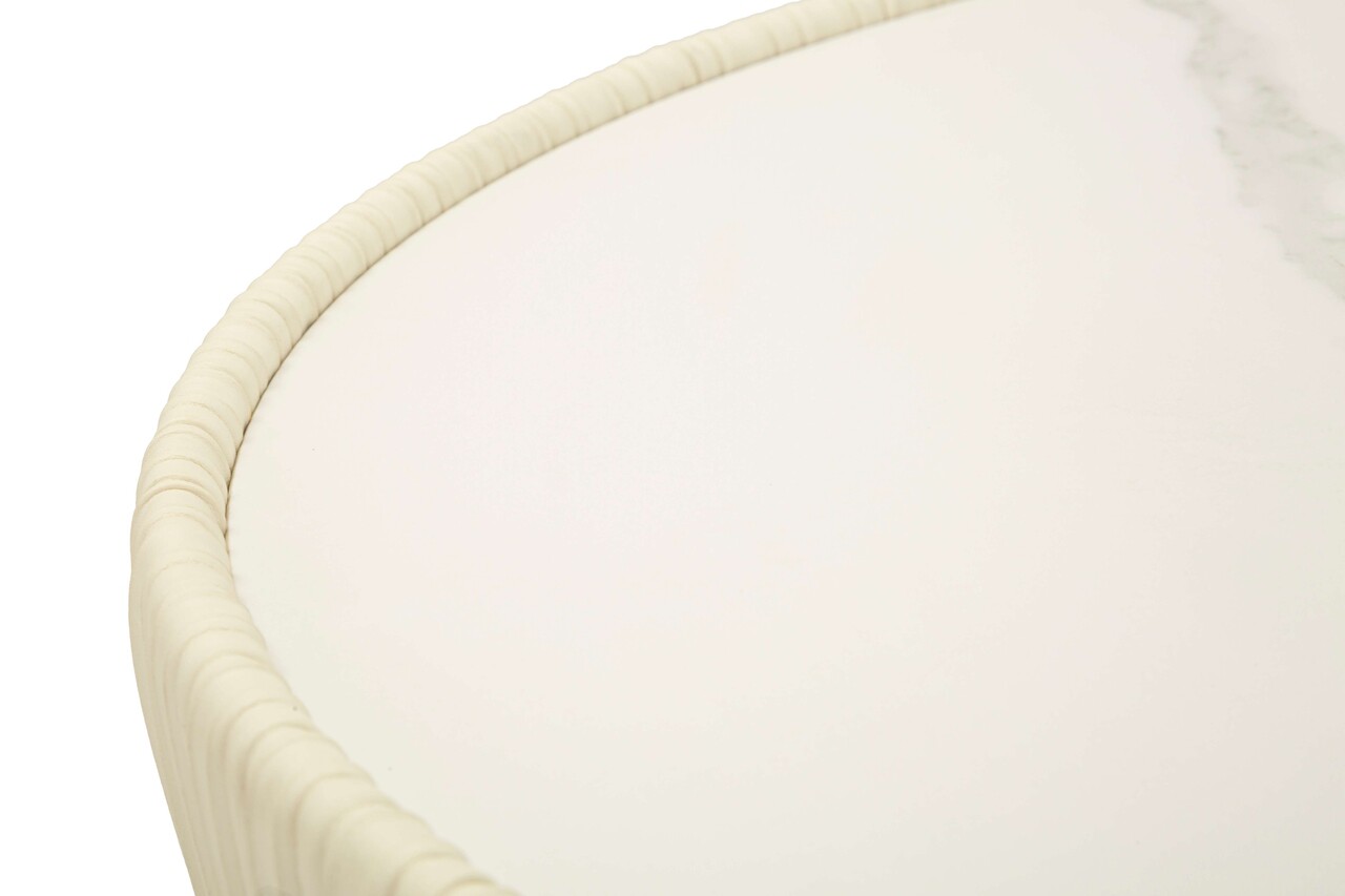 Masuta de cafea Elge, Mauro Ferretti, 71x71x38 cm, fier/ceramica, crem/auriu