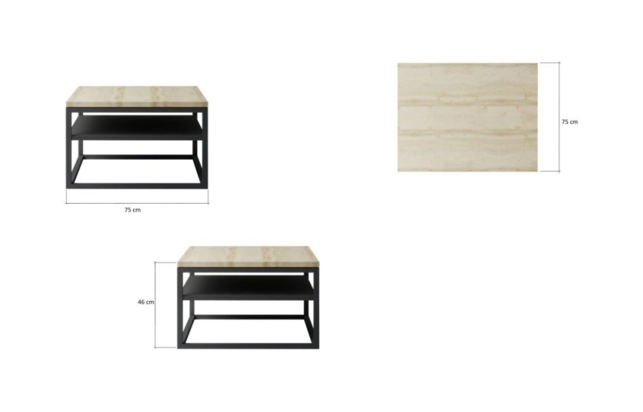 Masuta de cafea ELTAP, Lupe, 75x75x46 cm, otel/PAL, negru/sonoma
