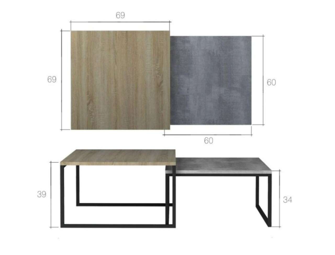 Masuta de cafea ELTAP, Nevio, 69x69x39 cm/ 60x60x34 cm, otel/PAL, multicolor