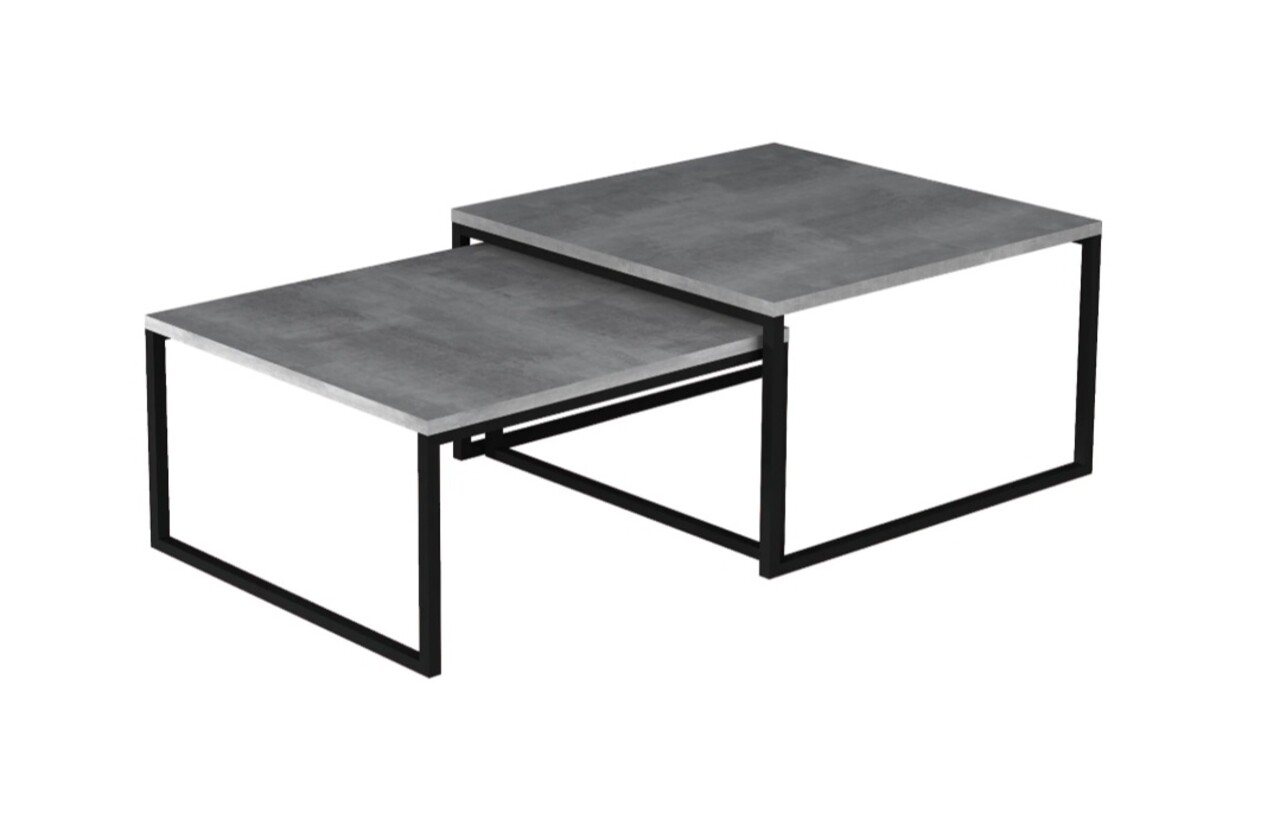 Masuta de cafea ELTAP, Nevio, 69x69x39 cm/ 60x60x34 cm, otel/PAL, negru/gri