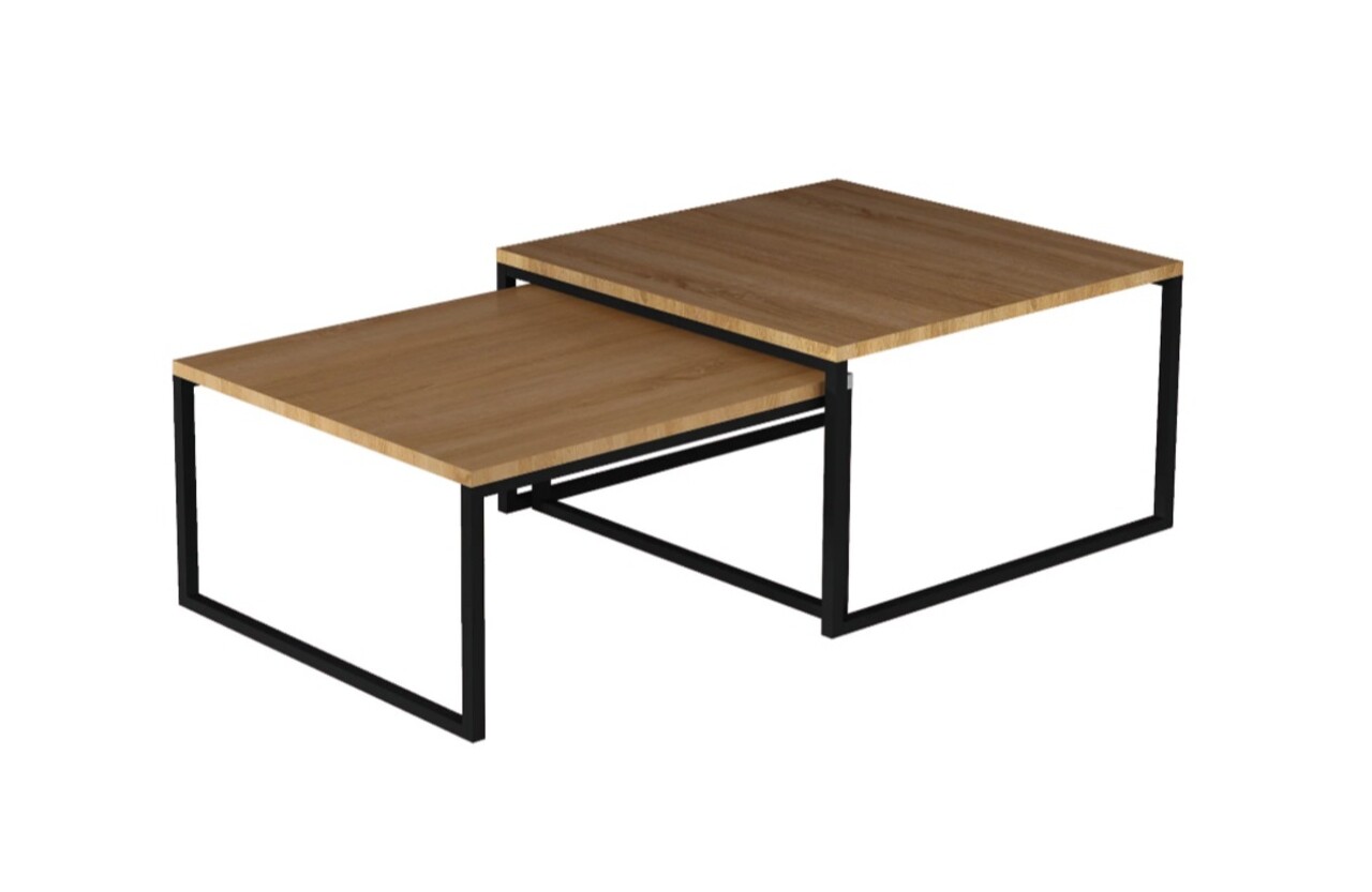 Masuta de cafea ELTAP, Nevio, 69x69x39 cm/ 60x60x34 cm, otel/PAL, negru/maro
