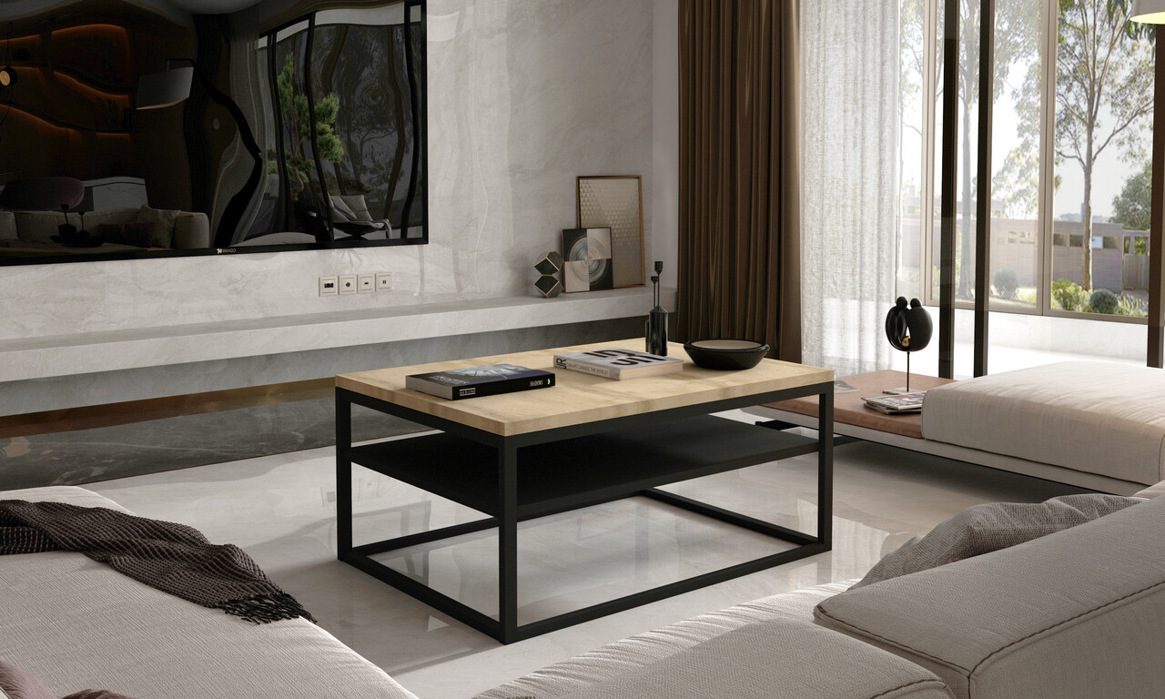Masuta de cafea ELTAP, Vince, 100x60x46 cm, metal/PAL, negru/sonoma