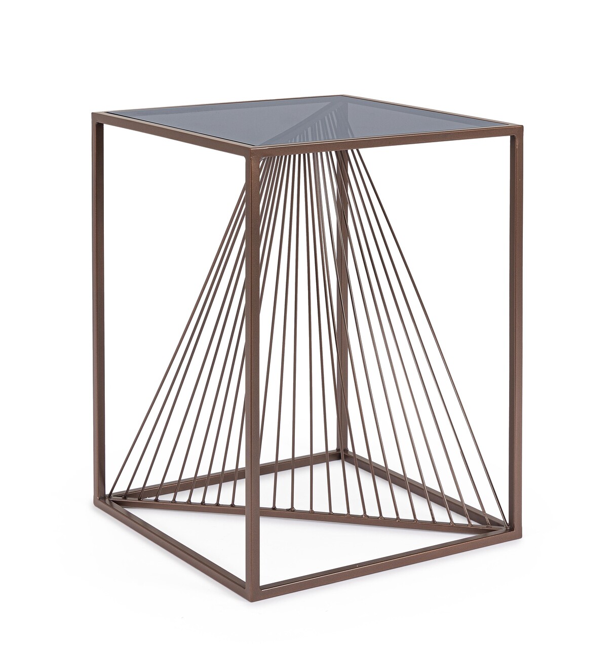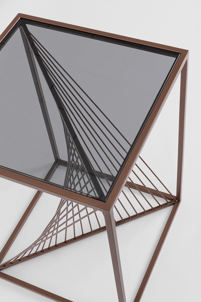 Masuta de cafea Espiral Coin, Bizzotto, 40x40x56 cm, otel/sticla temperata, maro coin
