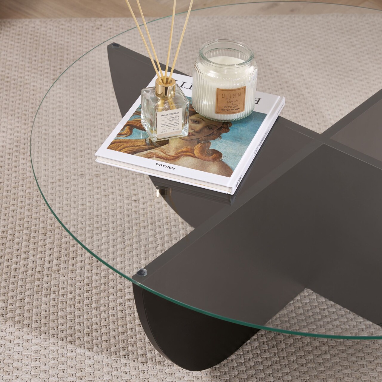 Masuta de cafea, Hanah Home, Liya, 90x30x90 cm, Sticla temperata , Negru