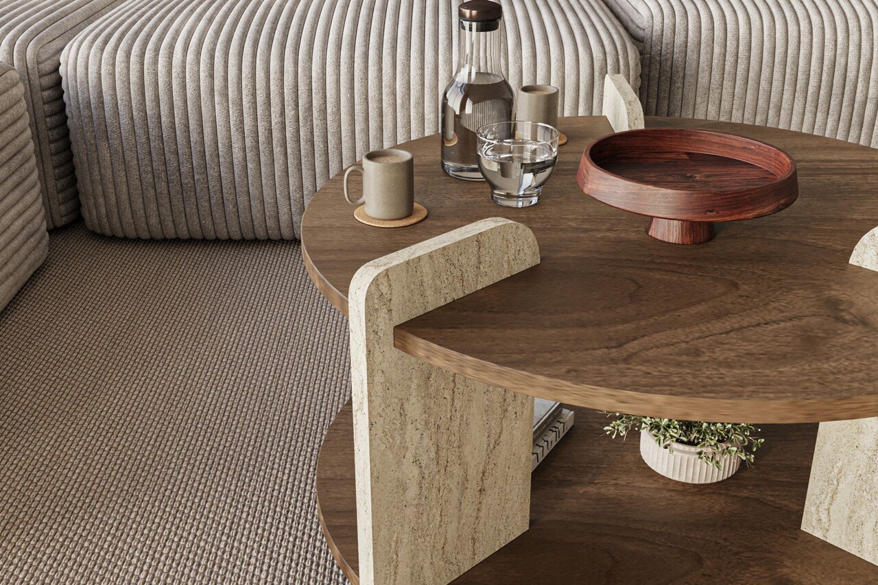 Masuta de cafea, Hanah Home, Oalla, 70x45x70 cm, Nuc / Travertin