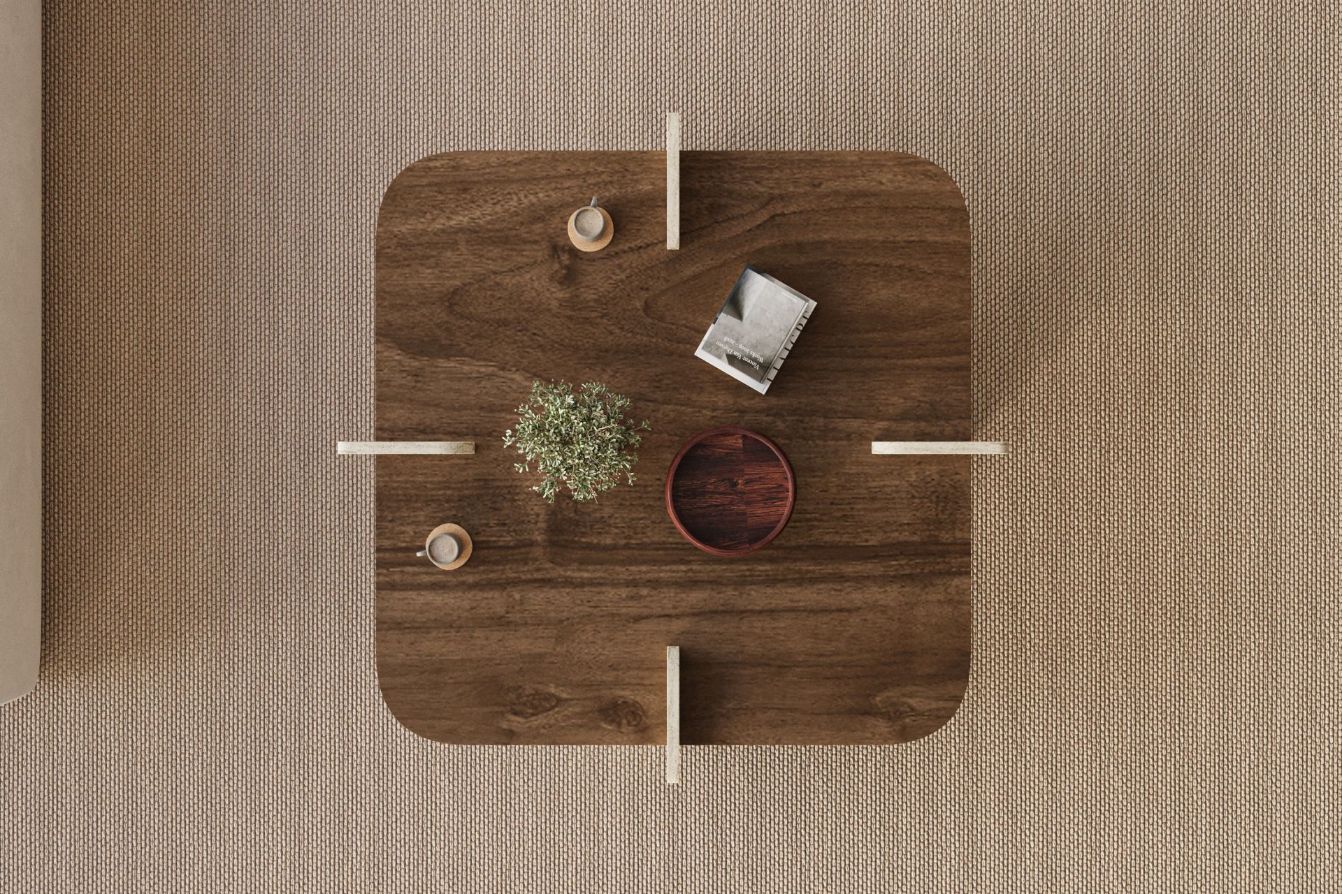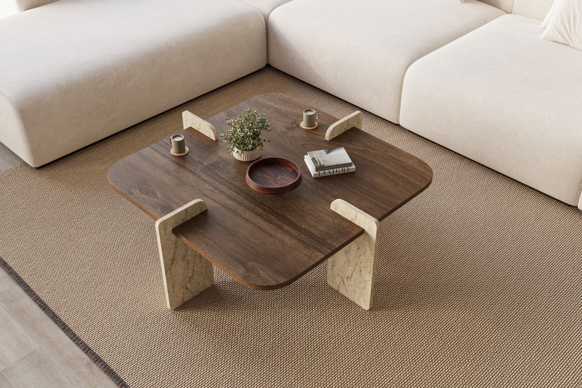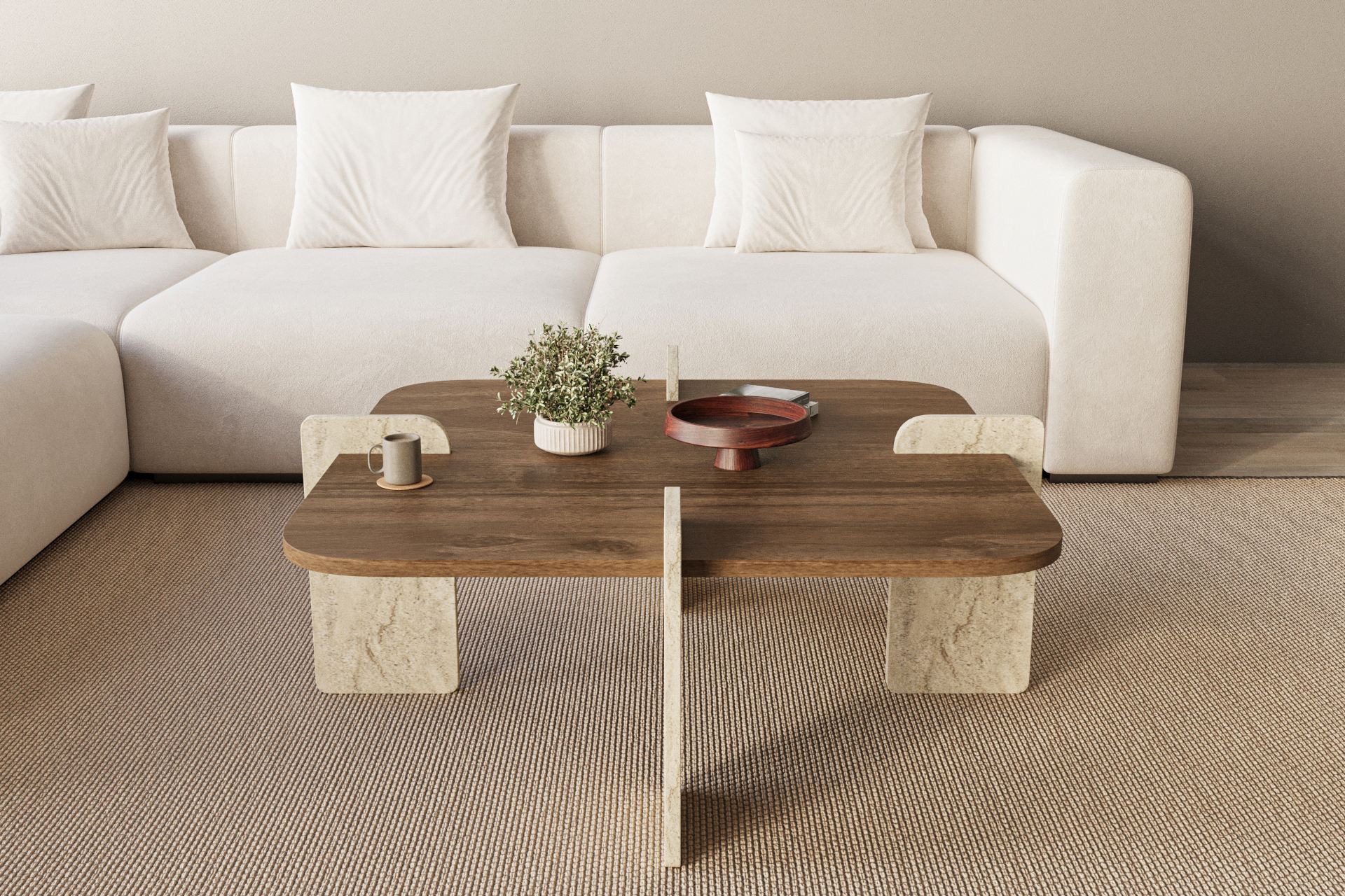 Masuta de cafea, Hanah Home, Poalla, 90x35x90 cm, PAL, Travertin / Nuc