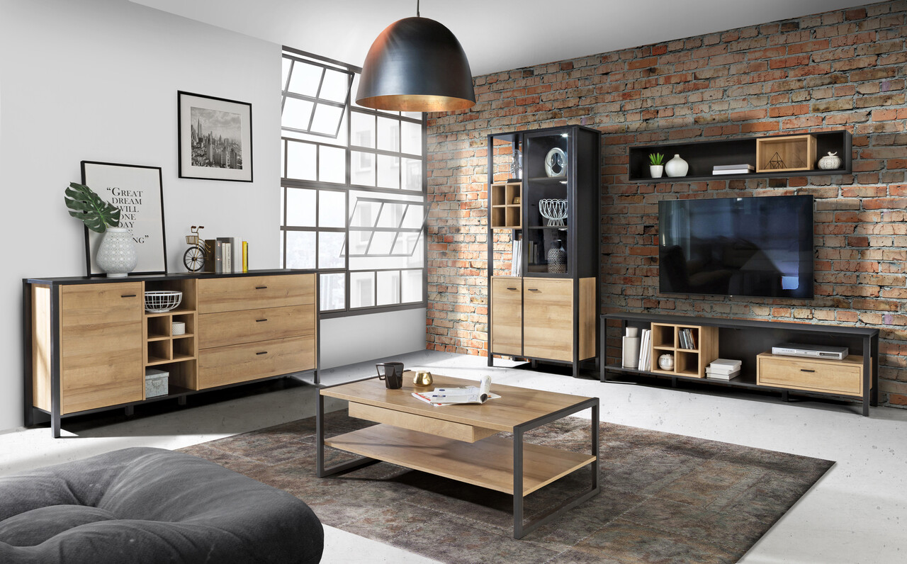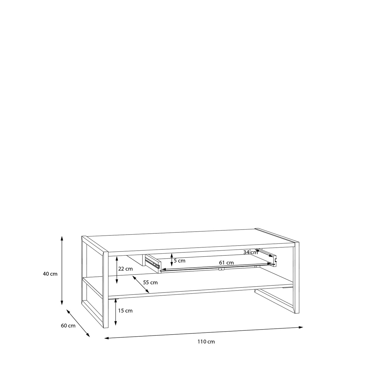 Masuta de cafea Heusden, Bedora, 110x60x40 cm, PAL, stejar/negru