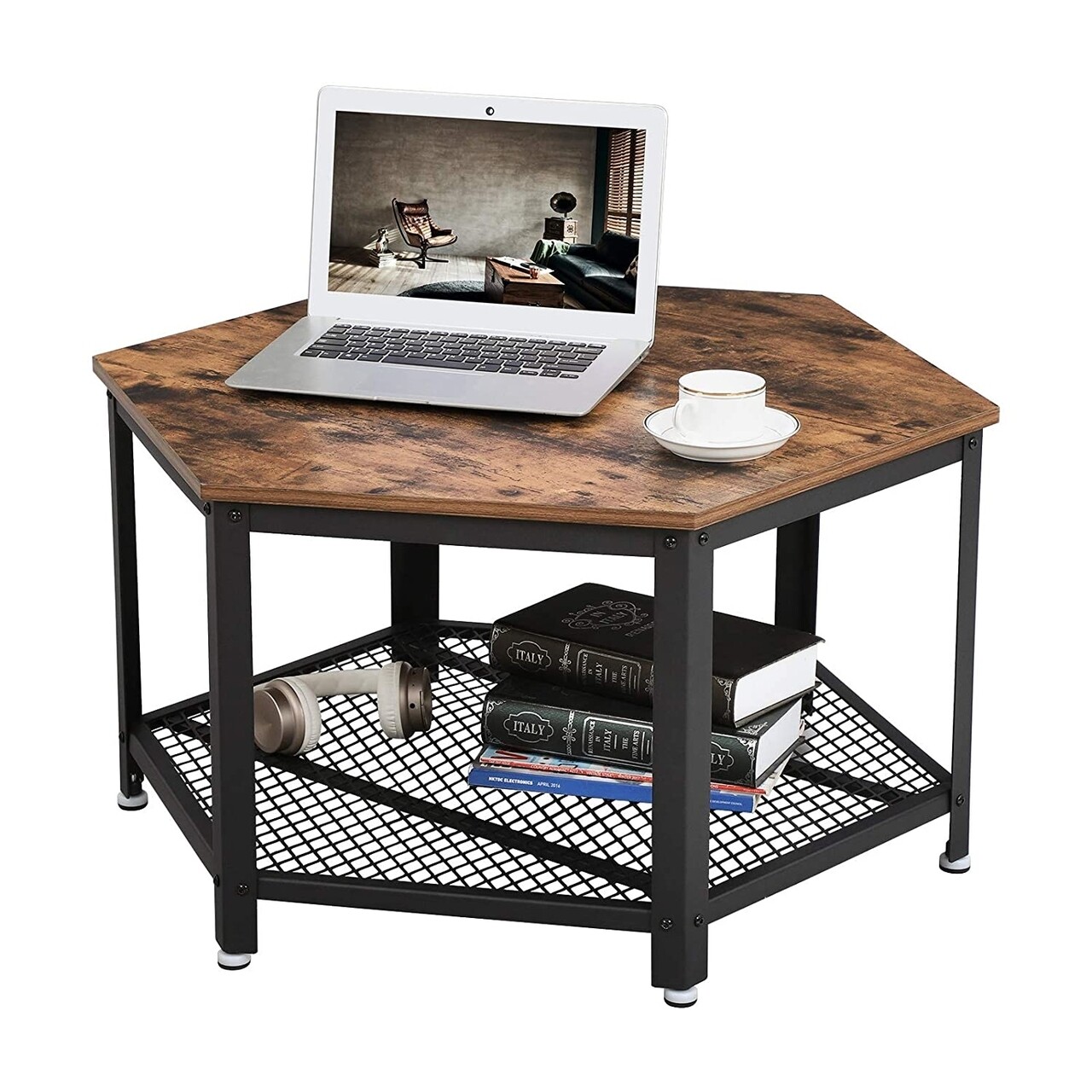 Masuta de cafea Hexagonal, Vasagle, 75 x 75 x 45 cm, fier/PAL, maro rustic