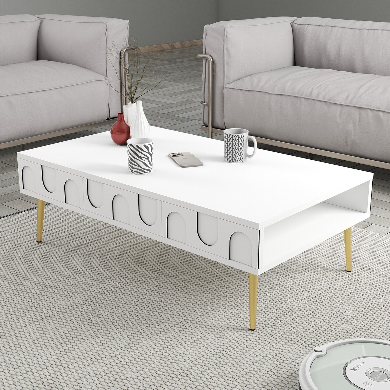 Masuta de cafea, Hommy Craft, Lyon 33, 105x33 cm, PAL, Alb/Auriu