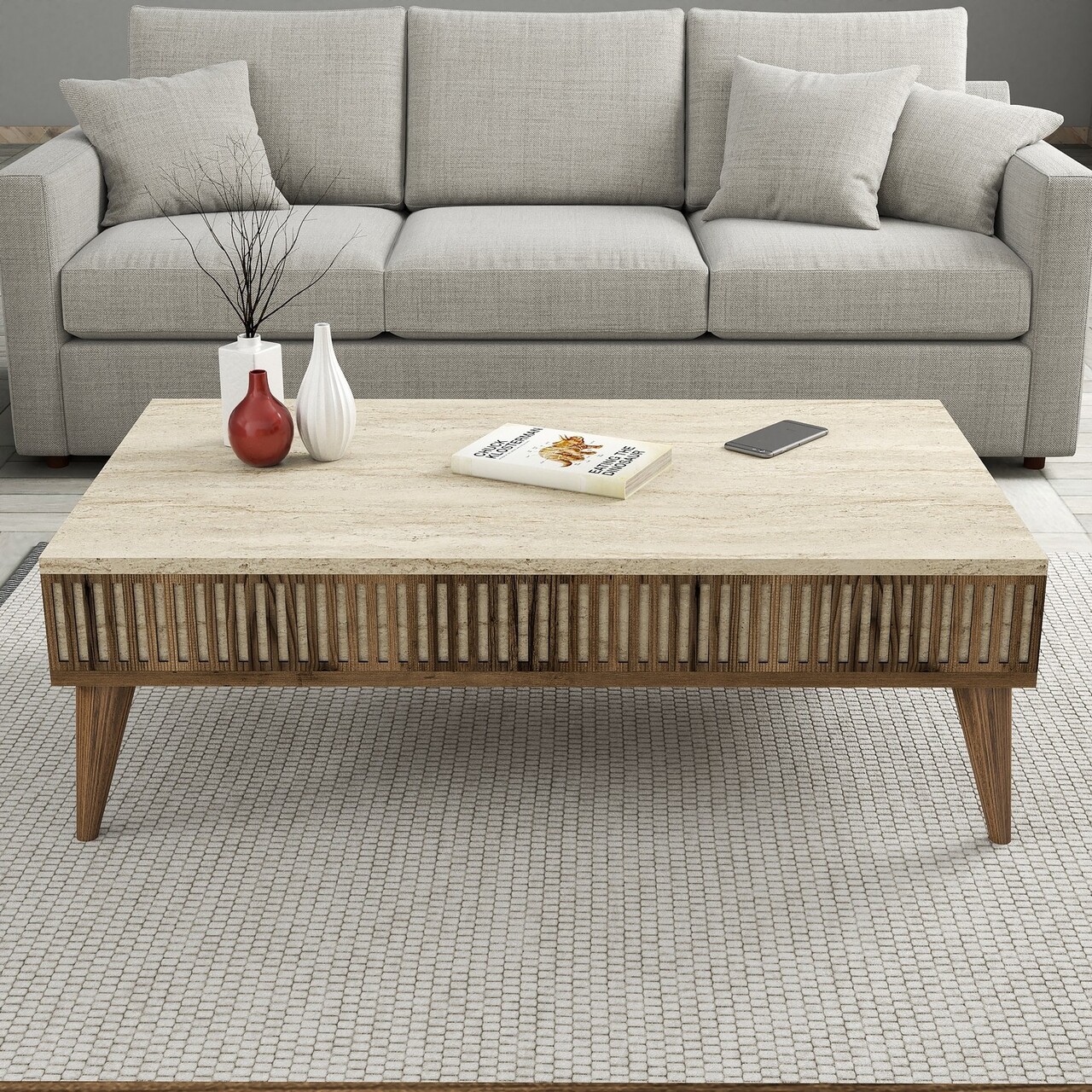 Masuta de cafea, Hommy Craft, Milan, 105x35x60 cm, PAL, Nuc / Travertin