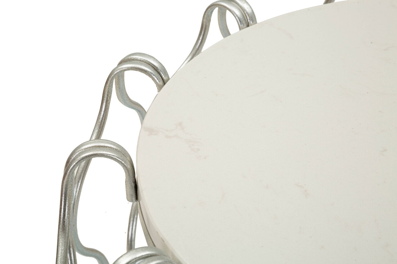 Masuta de cafea Hook, Mauro Ferretti, 47.5x47.5x61.5 cm, fier/marmura, argintiu