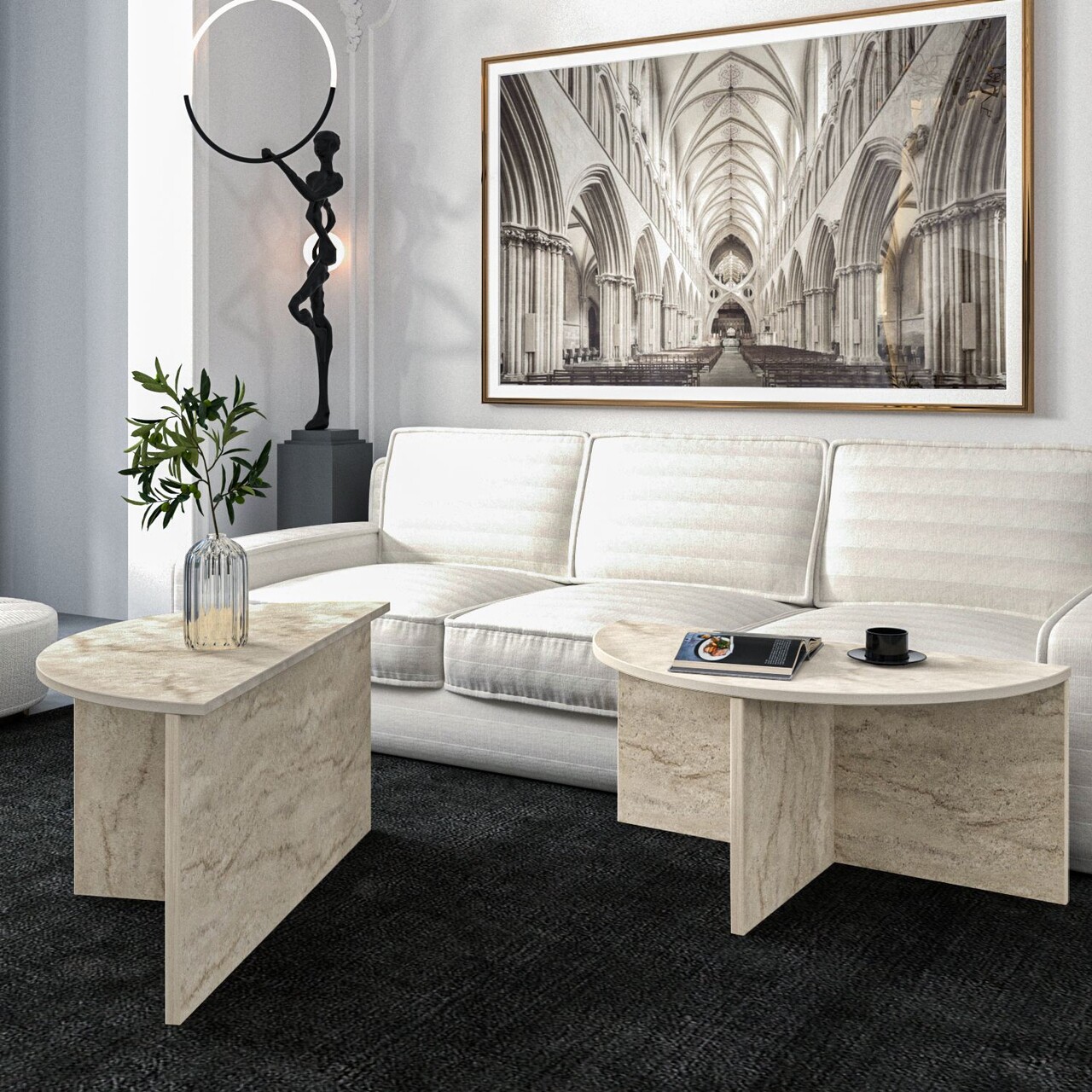 Masuta de cafea, Inarch, Dolunay, 70x51 cm, PAL, Travertin