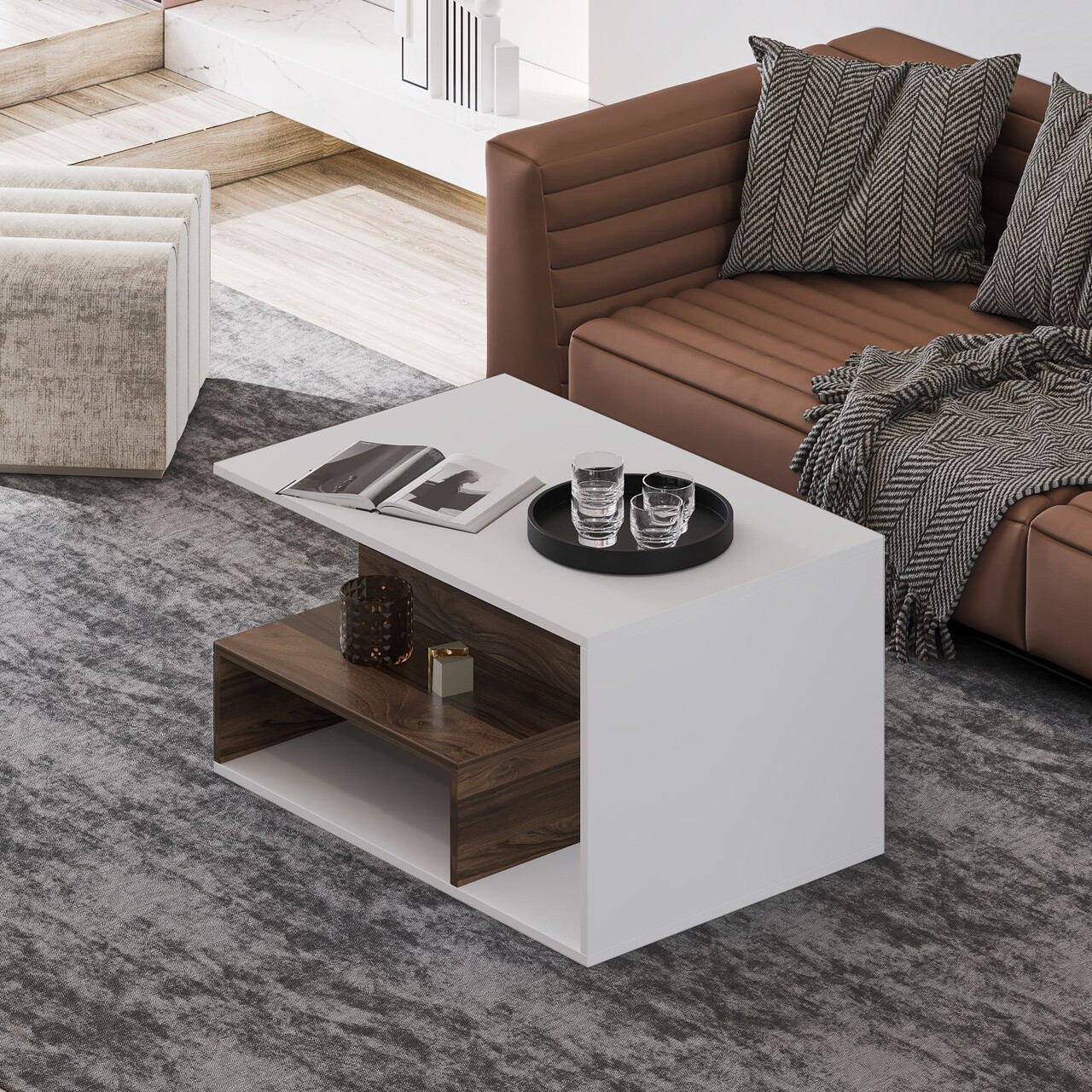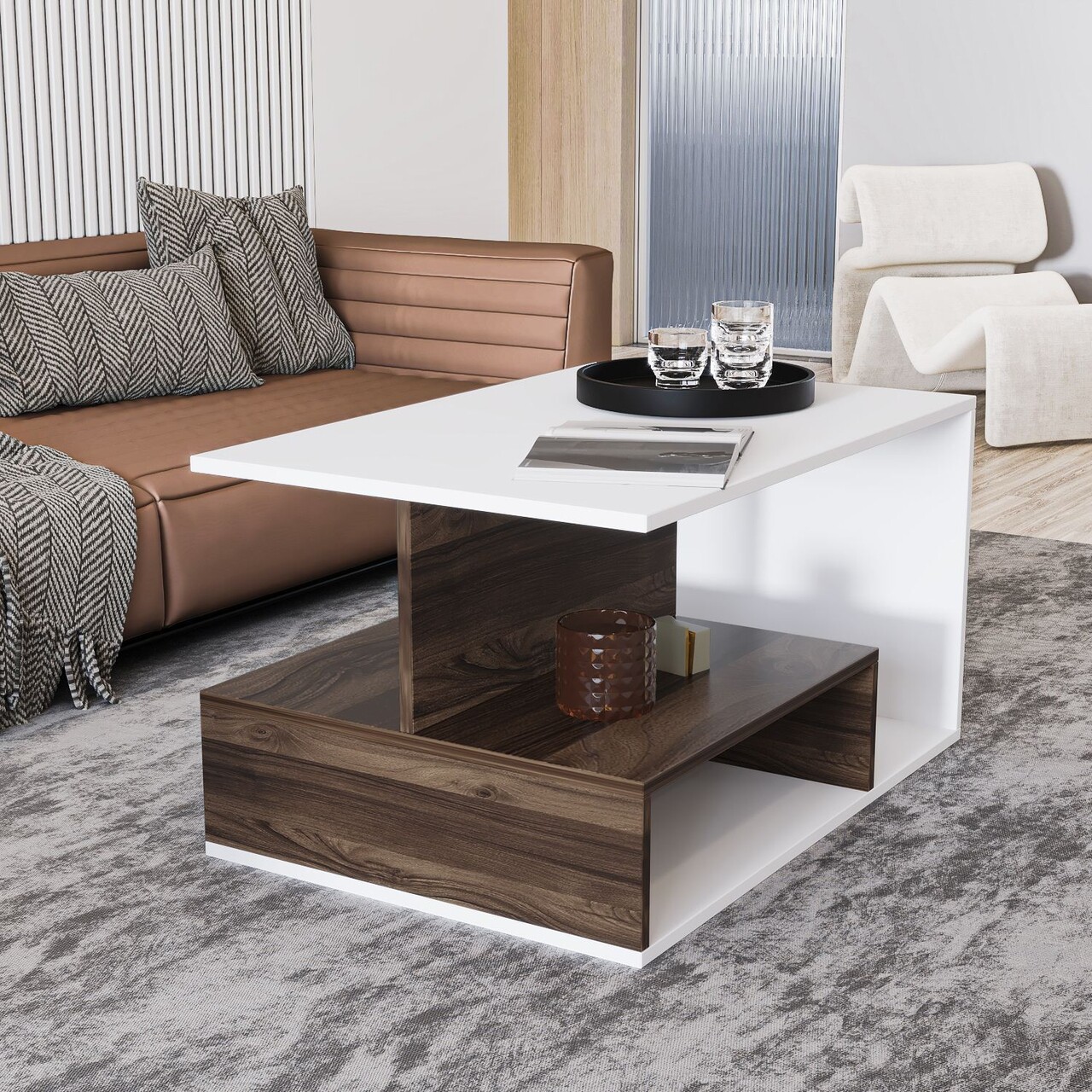 Masuta de cafea, Inarch, Vera S004, 90x48 cm, PAL, Alb/Maro