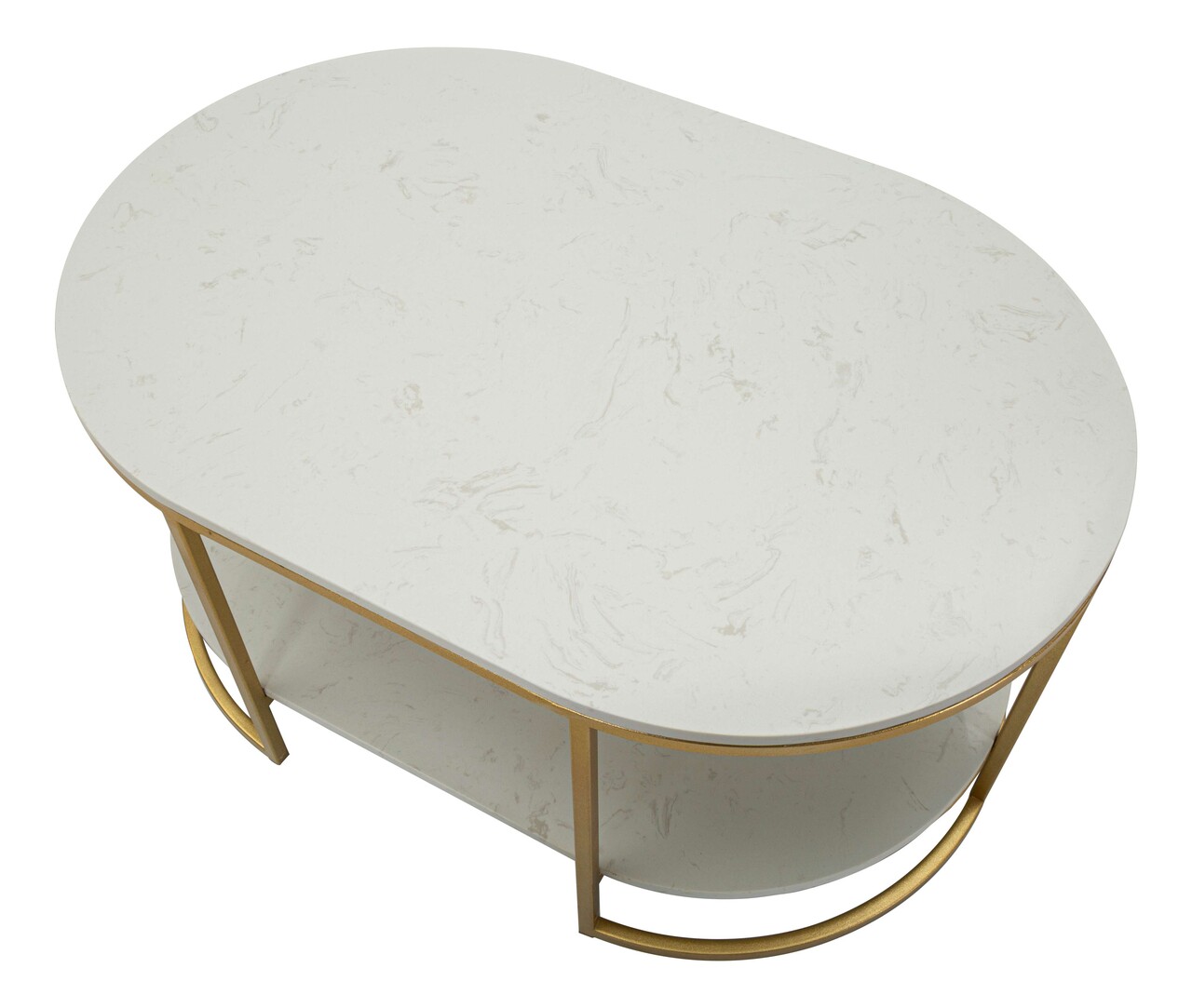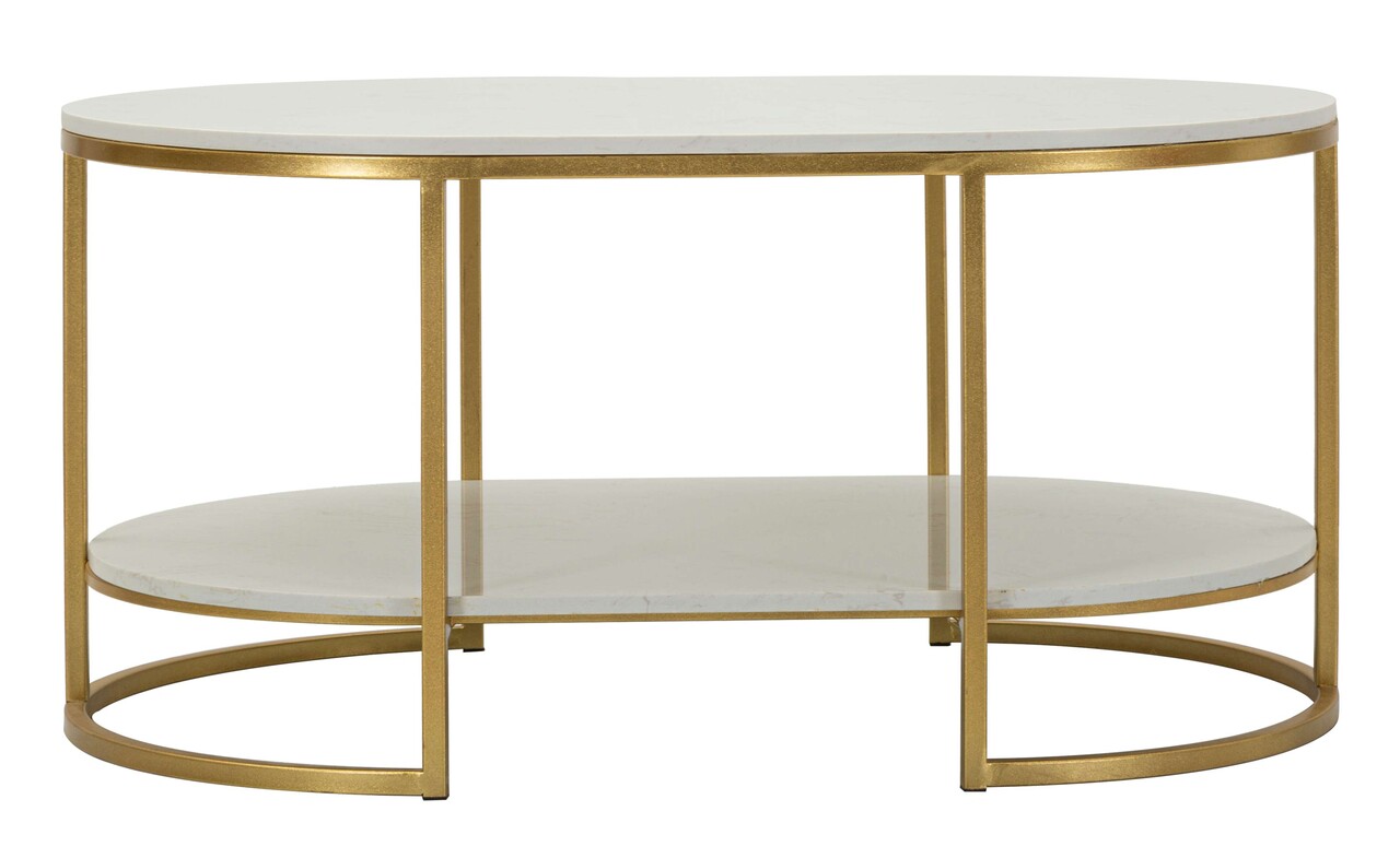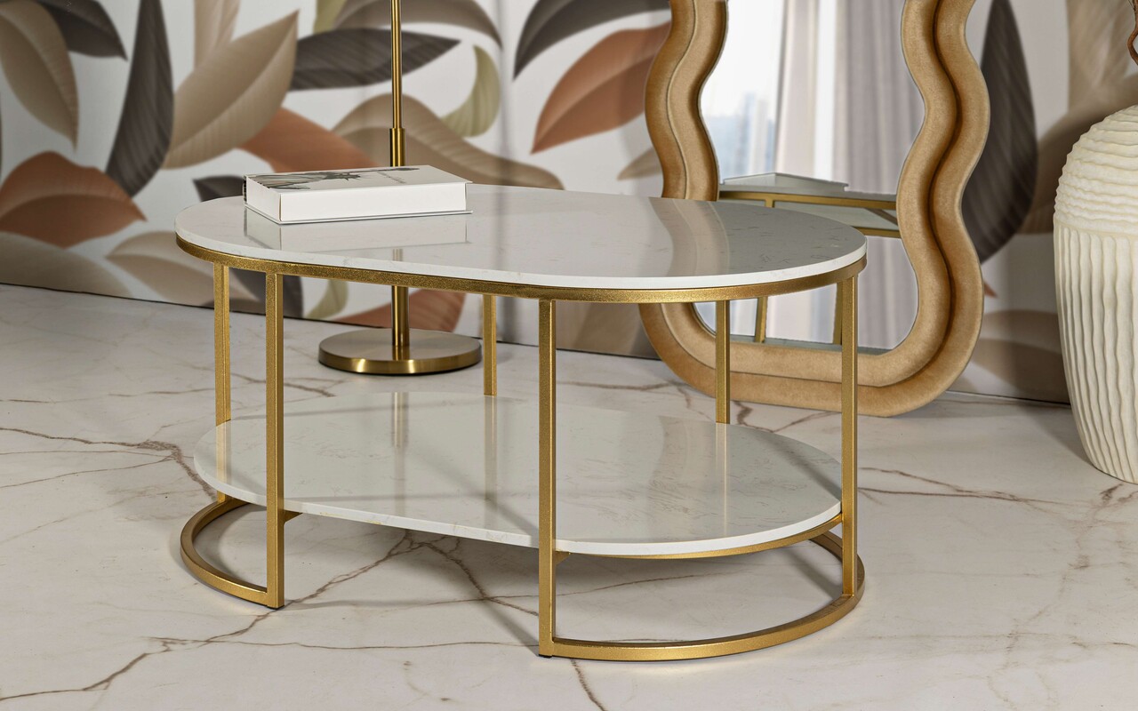 Masuta de cafea Izmir, Mauro Ferretti, 90x60x45 cm, fier/marmura, auriu/alb
