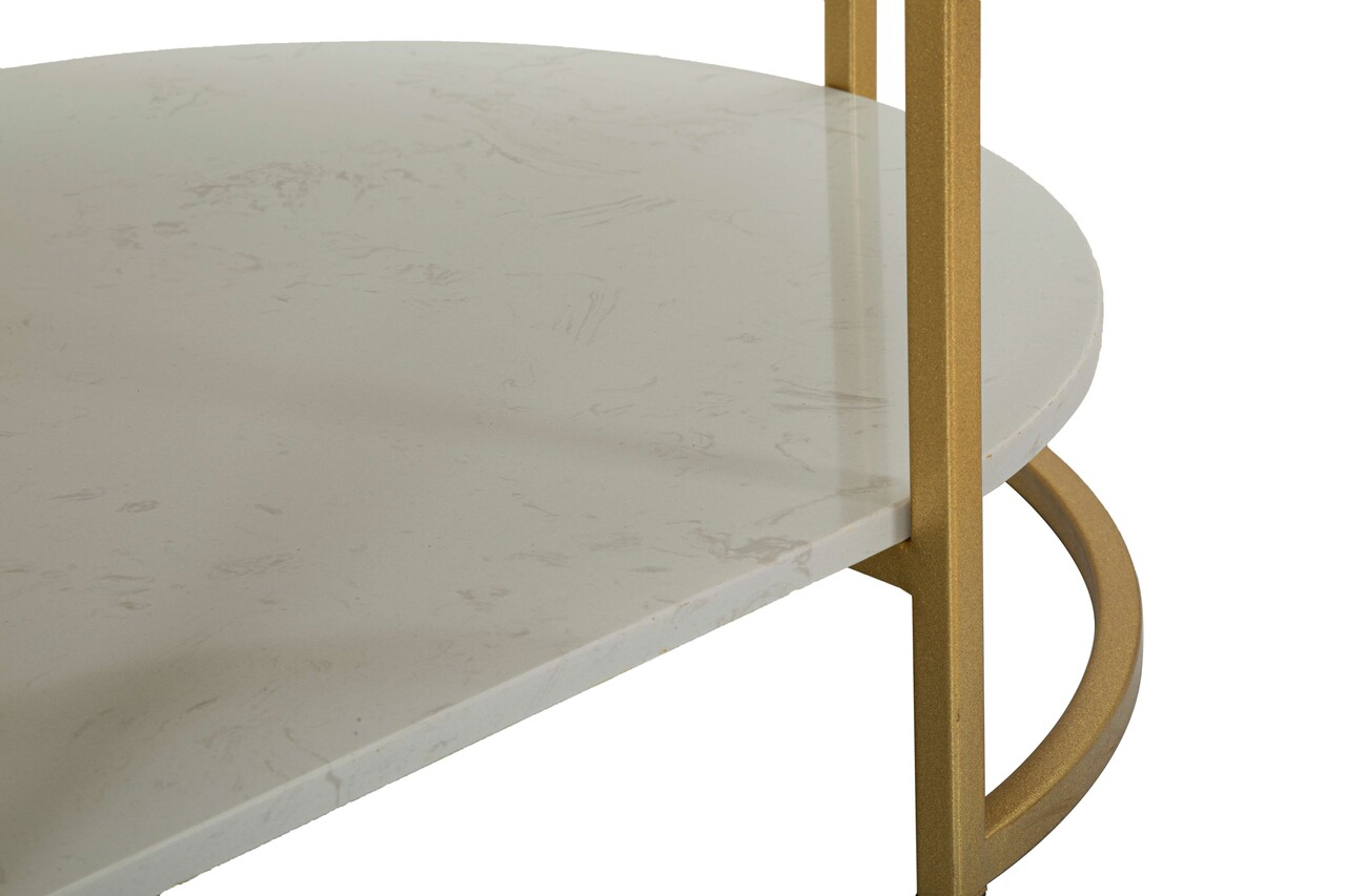 Aceasta masuta impresioneaza prin functionalitate si stil. Blatul dublu cu aspect de marmura si structura metalica aurie o transforma intr-un element decorativ ideal pentru interioare elegante si moderne. Distanta dintre rafturi: 28.5 cm.