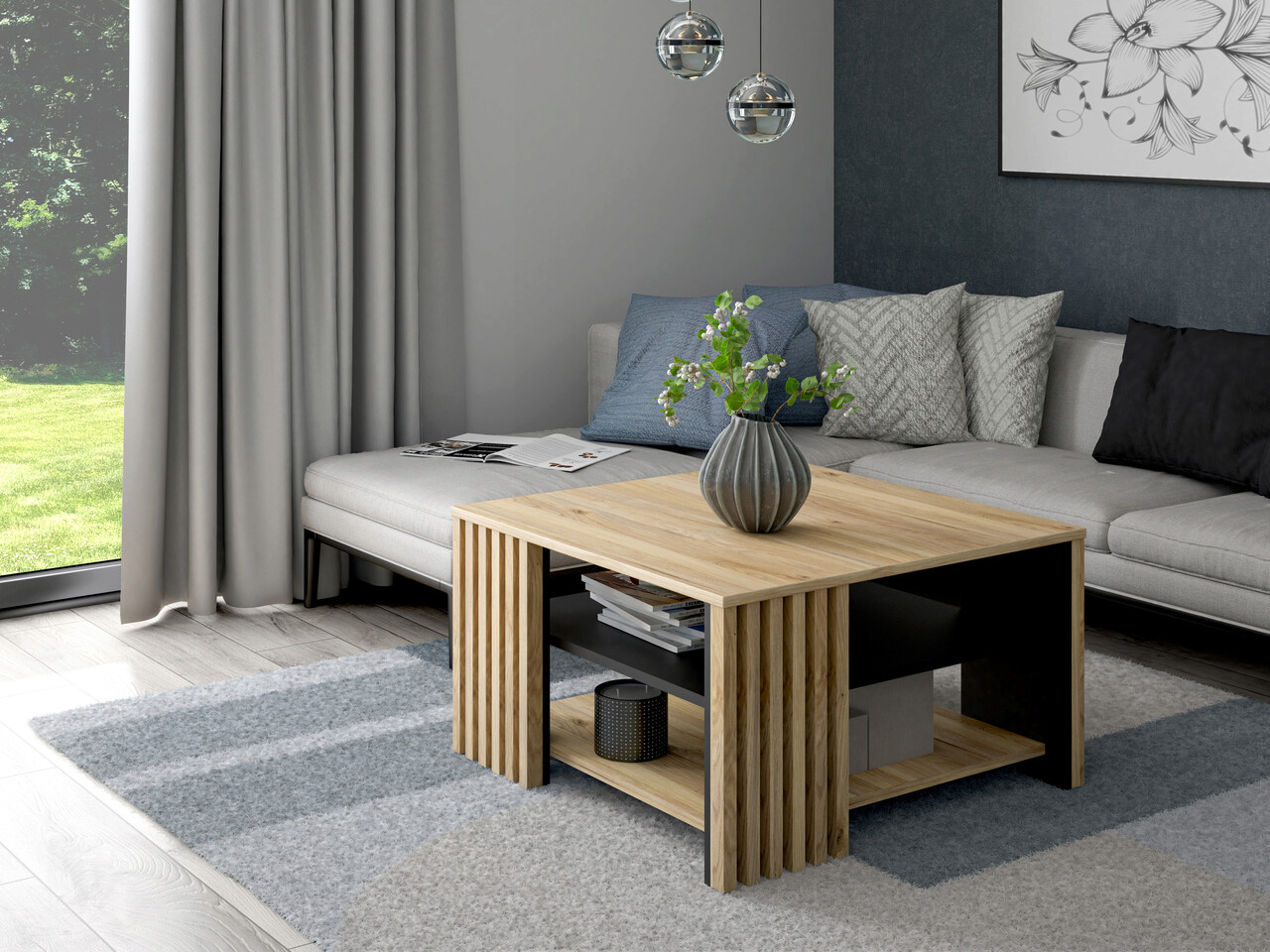Masuta de cafea Kampen, Bedora, 80x80x45 cm, PAL, stejar/negru