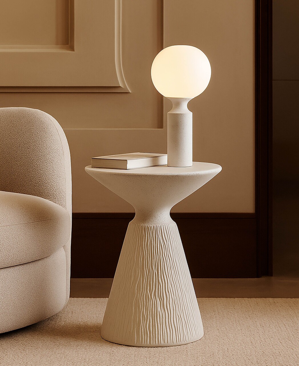 Masuta de cafea, Mauro Ferretti, Cone, 40x53 cm, oxid de magneziu, crem