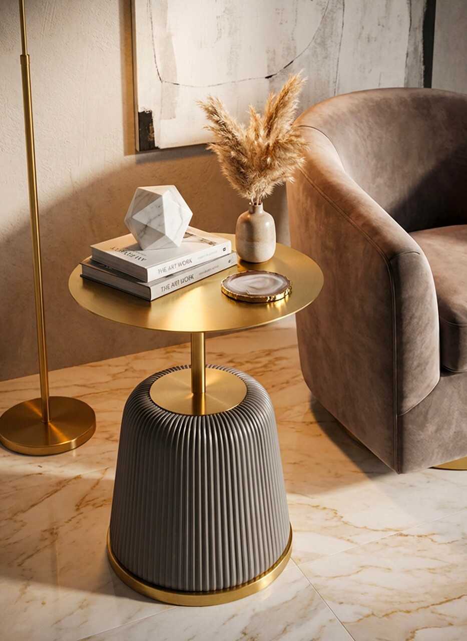 Masuta de cafea, Mauro Ferretti, Egle, 40x55 cm, metal/poliuretan, gri/auriu