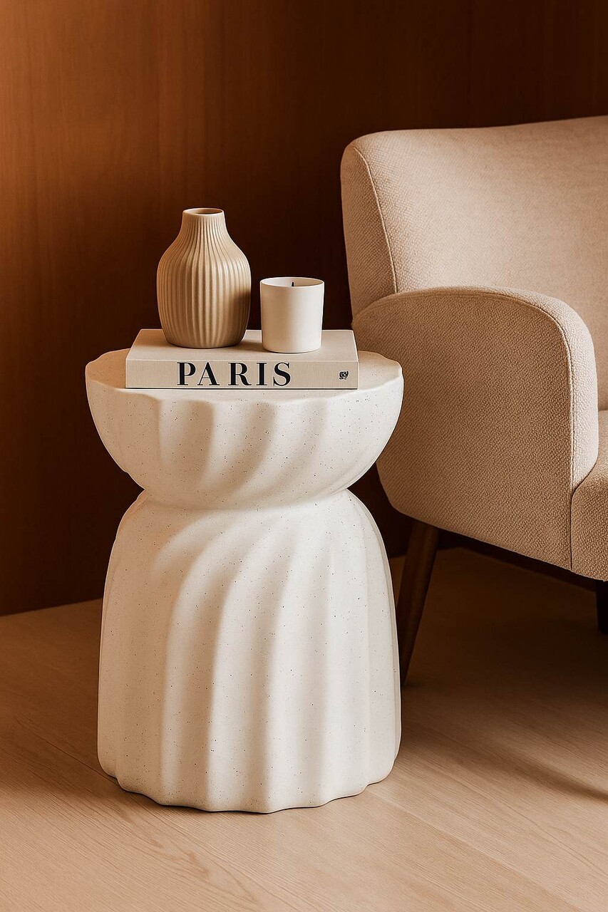 Masuta de cafea, Mauro Ferretti, Twisty, 36x47.5 cm, oxid de magneziu, crem