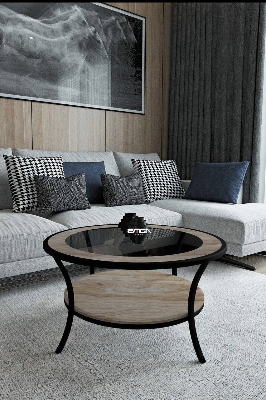 Masuta de cafea, Mirosa, Lotus, 75x45x75 cm, Blat: 100% STICLA CALITA, Pin antic / Fum