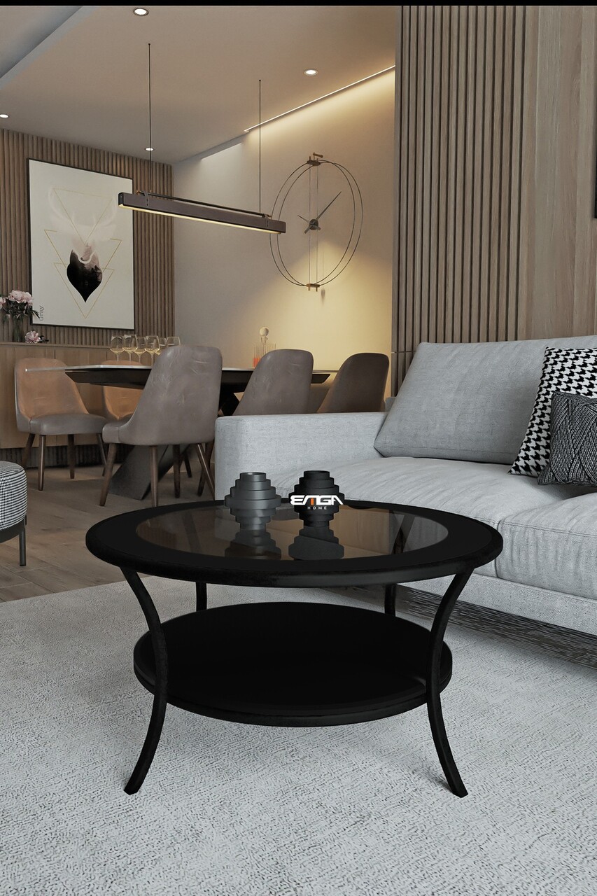 Masuta de cafea, Mirosa, Lotus, 75x45x75 cm, Blat: 100% STICLA CALITA, Negru / Fume