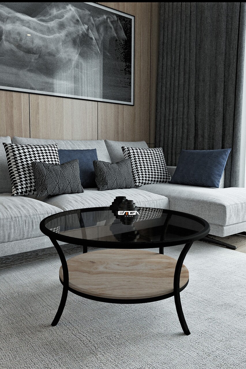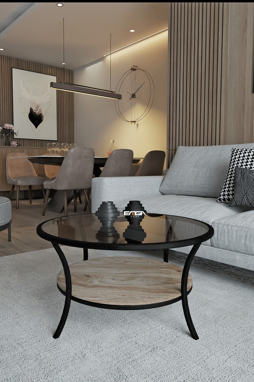 Masuta de cafea, Mirosa, Lotus, 75x45x75 cm, Blat: 100% STICLA CALITA, Fum / Pin antic