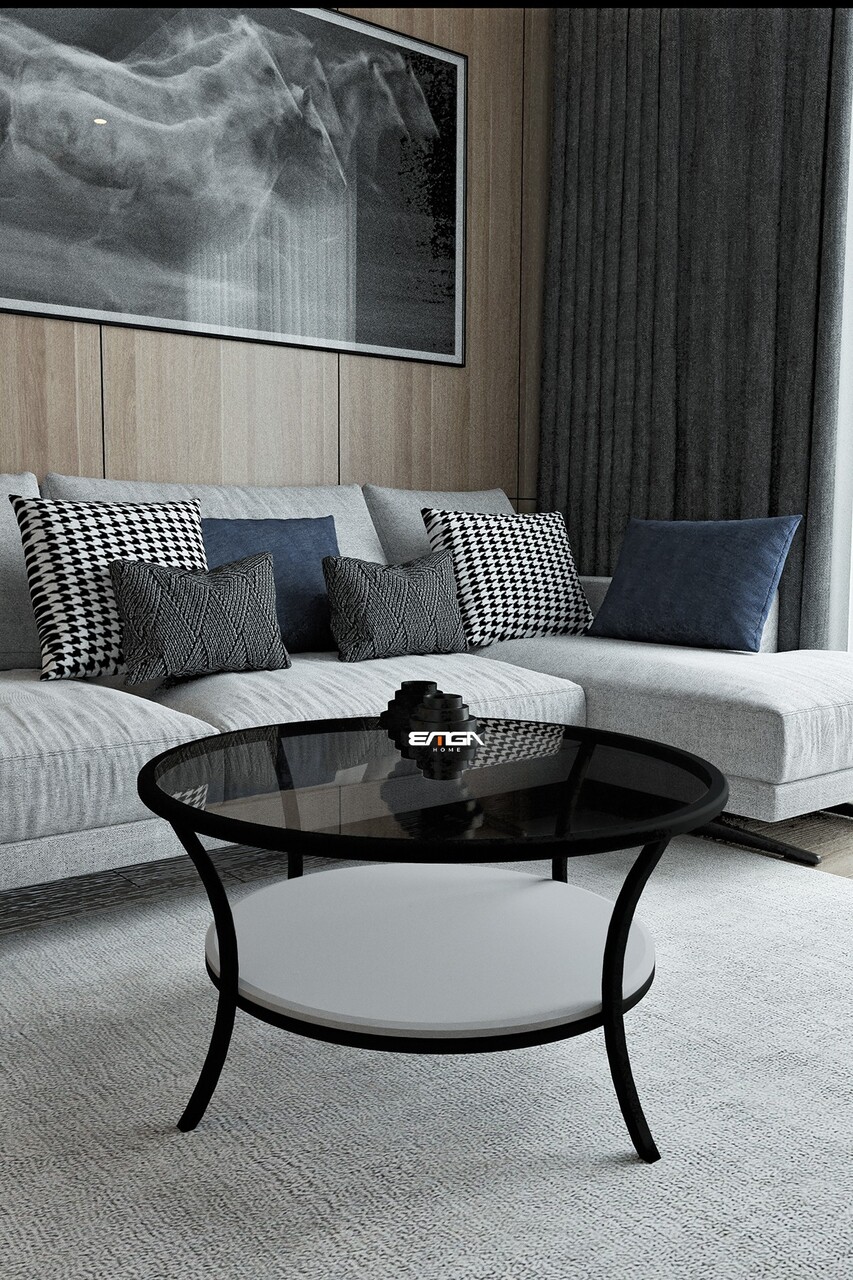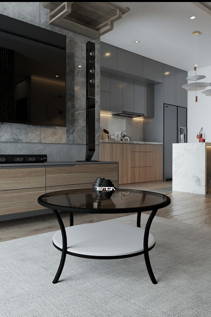 Masuta de cafea, Mirosa, Lotus, 75x45x75 cm, Blat: 100% STICLA CALITA, Fume / Alb