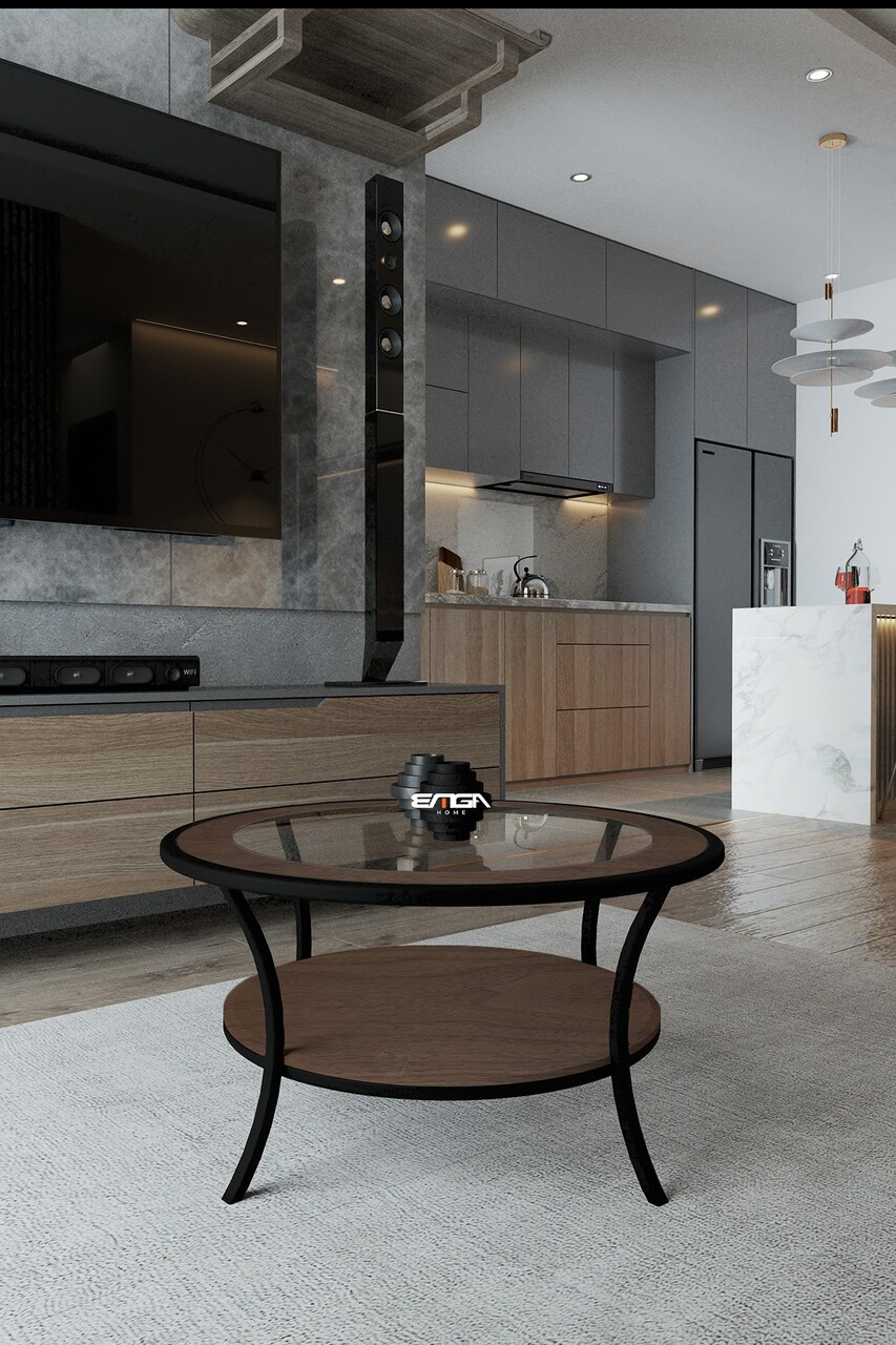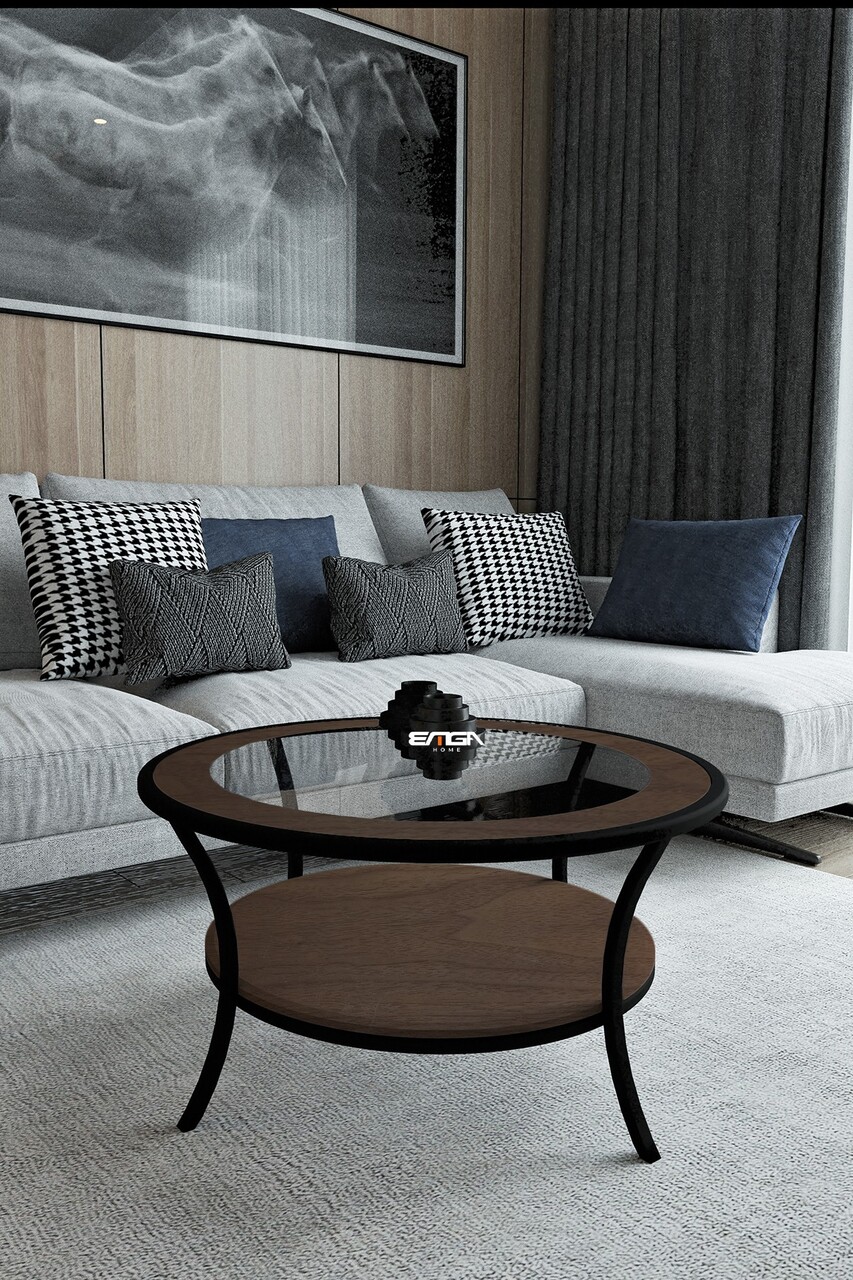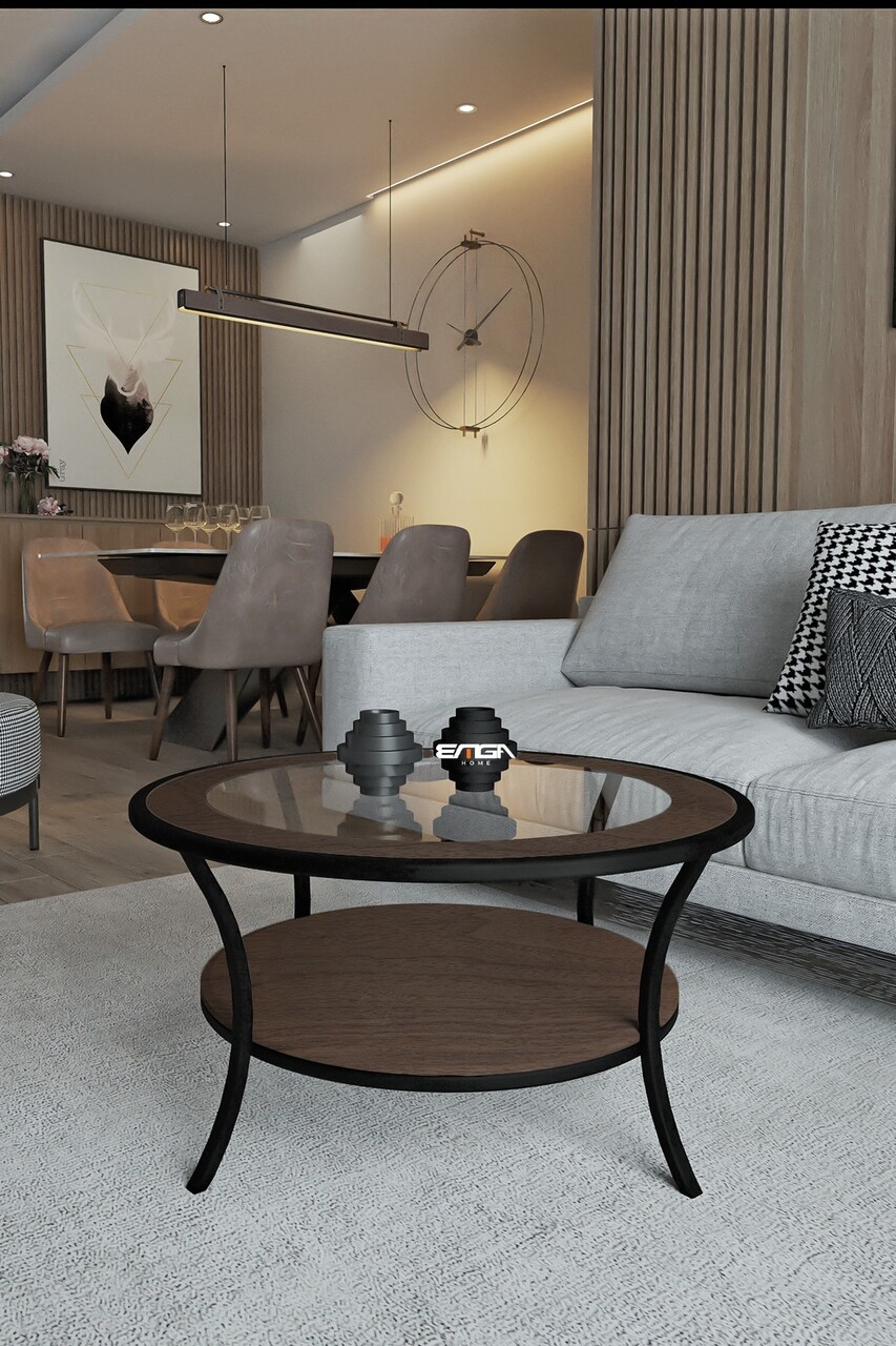 Masuta de cafea, Mirosa, Lotus, 75x45x75 cm, Blat: 100% STICLA CALITA, Transparent/Nuc