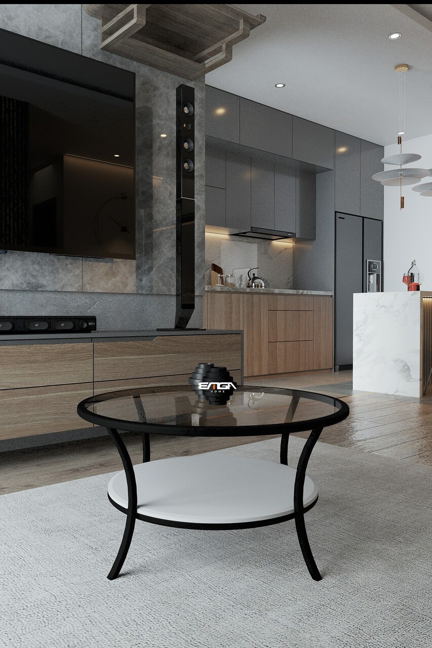 Masuta de cafea, Mirosa, Lotus, 75x45x75 cm, Blat: 100% STICLA CALITA, Transparent/Alb