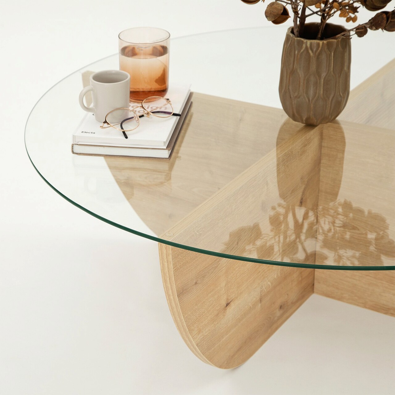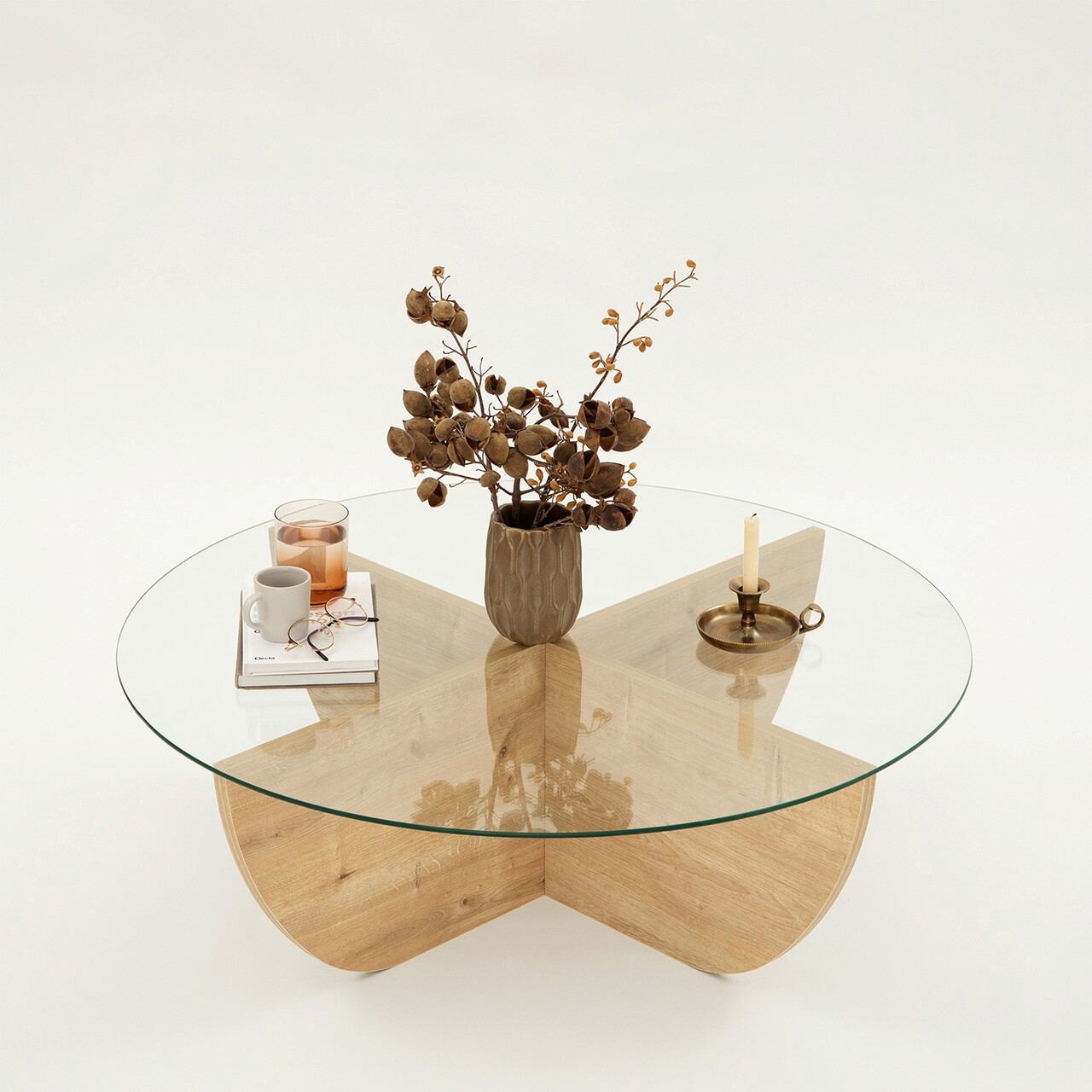 Masuta de cafea, Neostill, Lily, 90x30x90 cm, Sticla temperata , Maro